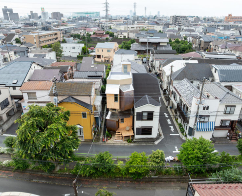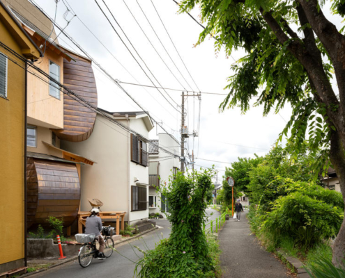 Green House, Tokyo’nun Nerima semtinde, mahalle sakinlerinin çiçek ve meyve ağaçları yetiştirdiği yemyeşil bir yaya yeşil koridoru üzerinde konumlanan kompakt bir konut projesi. Yapı, çevresindeki lineer çevreye yalnızca cephe veren bir hacim olmaktan çıkıp, mekansal bir sahne yaratacak şekilde tasarlanmış; bu sahne etkileşime davet ederken zaman içinde yerel ekosistemin bir parçası haline geliyor.