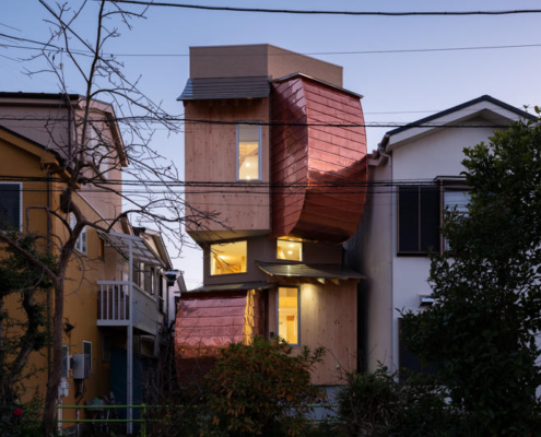 Shin Aoki and Partners, Nerima’daki Green House’da arsanın doğal yeşil koridoruyla kurduğu diyalog, geri çekilmiş teras ve ön bahçesi ile bakır hinoki cephe çözümü üzerinden, kentsel peyzajla içsel yaşamı birleştiren yalın bir konut mekanı oluşturuyor.