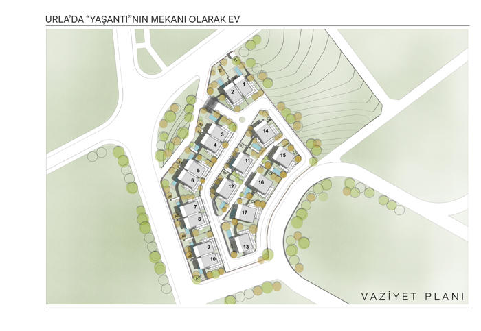 Bu nedenle Hayal Urla Evleri’nin mimari konsepti, yukarıda açıklanan “ev” in anlamından uzaklaşmadan,ev aracılığıyla bir yer tasarlamaktır. Evler, farklı olmaya çalışmayan, basit kütlesel ve mekânsal organizasyona sahiptirler. Urla’nın tarihsel evlerinin mekânsal tipolojilerini yorumlayarak bir araya gelen üç farklı tipteki bu evlerin mimari kurgusu bir ” yer” oluşturmaya yöneliktir.