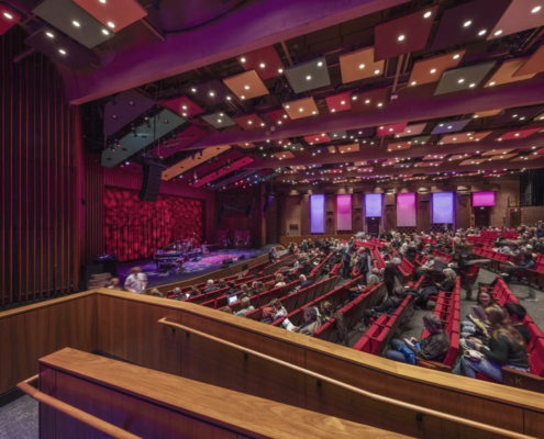 Genişletilen yapıda 150 kişilik bir Recital Hall yer alıyor. Bu salon, geniş cam pencereleri ve eğimli kemerli çerçevesiyle doğal gün ışığını içeri alıyor. Cam iskelet sistemi, eğri mulliyonlarla desteklenerek hem strüktürel hem mimari bir ifade kazanıyor. Ayrıca, binanın alt kotunda kuzeye bakan pencerelere sahip bir dans stüdyosu bulunuyor. Bu alan, yüksek tavanı ve bol doğal ışığı ile dans pratiği için uygun bir atmosfere sahip. Spaulding Auditorium da kapsamlı şekilde yenileniyor. Mevcut akustik, ulaşım ve dolaşım sistemleri modern gereksinimlere göre yeniden ele alınıyor.