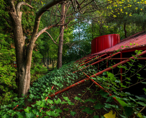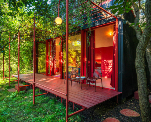 NOKE Architects tarafından tasarlanan House of Color Downtown Oasis, Varşova’nın kent merkezinden birkaç durak ötede, doğanın içerisinde renkli bir sığınak görevi görüyor.