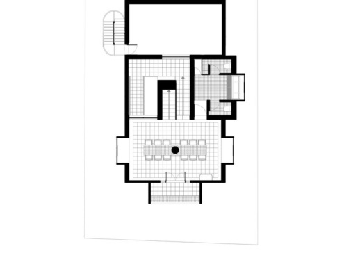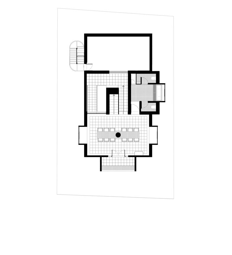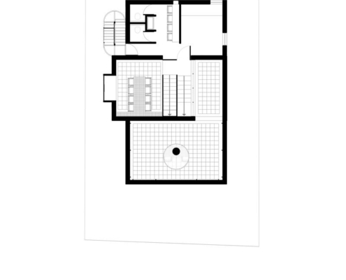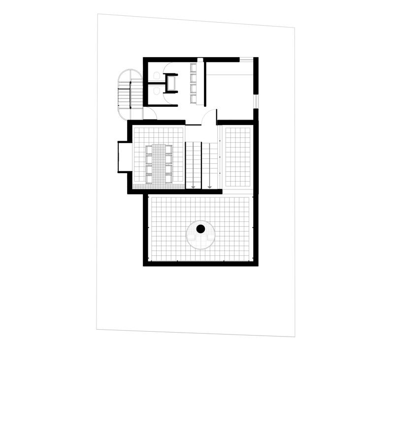Doğal ışık, aksi takdirde loş ve karanlık kalacak olan alt katlara süzülüyor. En alt katta bile kullanıcılar, delikten gökyüzünü seyretme şansı yakalayabiliyor ve gün boyunca zamanın akışını izleyebiliyor. Böyle sade bir mekan için değişen gölgeler ve azalan gün ışığı süslemeler haline gelmesi performatif bir mekansal oyun ortaya çıkarıyor.