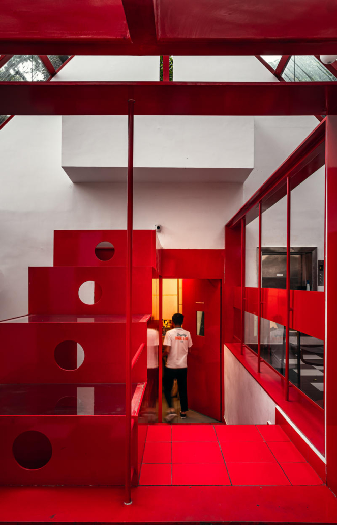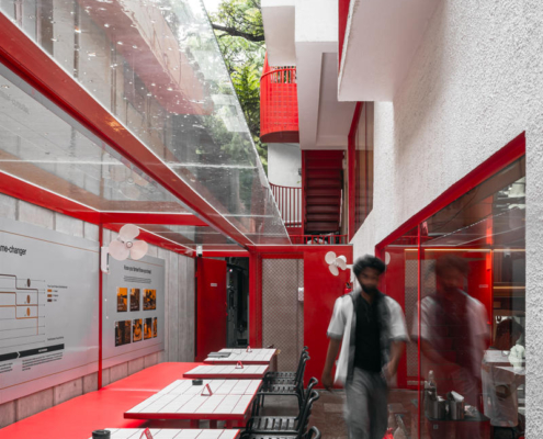 Just Loaf ile Cochin Creative Collective, Bangalore şehrindeki kırk yıllık bir beton yapıda iç mekanda ışık alımını artırmak üzere yeniden kurgulanan döşemeleriyle, bir topluluk deneyimi sunuyor.