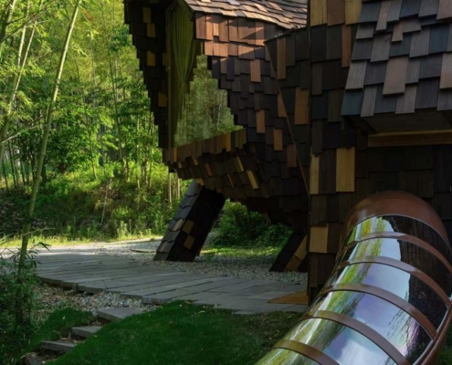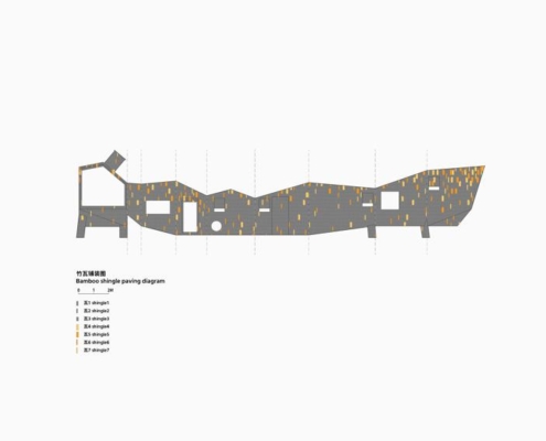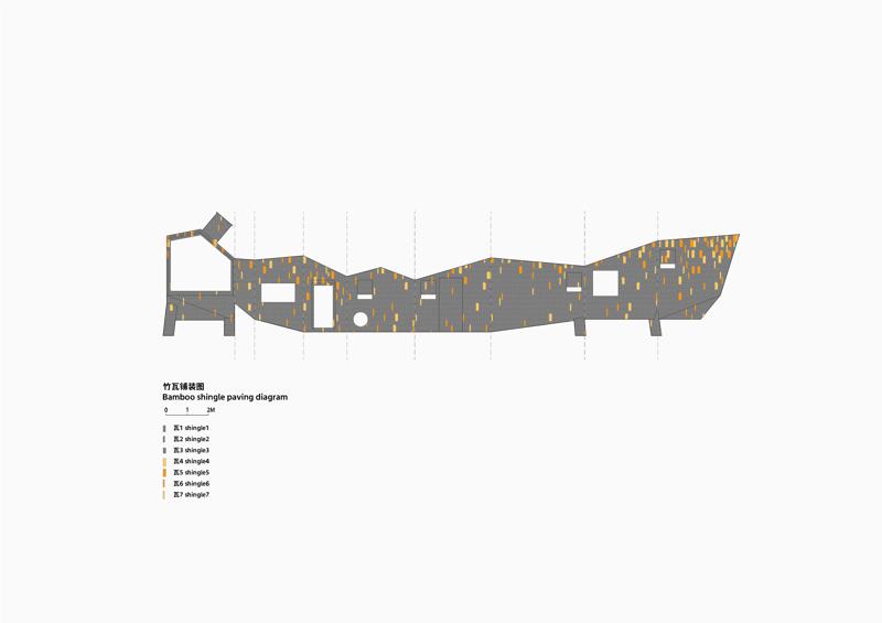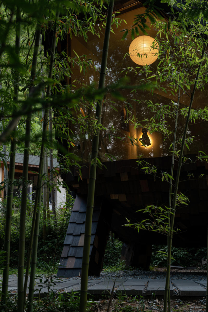 Projenin kavramsal arka planında, kedilerin doğayla kurduğu uyumlu ilişki önemli bir referans oluşturuyor. Değişen koşullara sessizce adapte olabilen, bulunduğu ortama zarar vermeden hareket eden kedilerin akışkan bedensel halleri, Kedi Ev’in mekansal diline ilham veriyor. Bu yaklaşım, yapının hem formunda hem de kullanım senaryosunda kendini hissettiriyor. Yapının bulunduğu Anji bölgesinin bambu üretimiyle tanınması, malzeme seçiminde belirleyici olmuş. Yeni bambu kiremitlerin maliyetinin yüksek olması nedeniyle, atık ve kullanılmayan kiremitlerin yeniden değerlendirilmesi tercih edilmiş. Başlangıçta koyu renkli karbonize bambu kiremitlerle tamamen kaplanması planlanan yapı, malzeme miktarının yetersiz kalmasıyla birlikte farklı renklerde kalan kiremitlerin bir arada kullanılmasıyla “siyah kedi”den “benekli kedi”ye dönüşmüş; bu durum yapıya daha oyunbaz ve çocuklara hitap eden bir karakter kazandırmış.