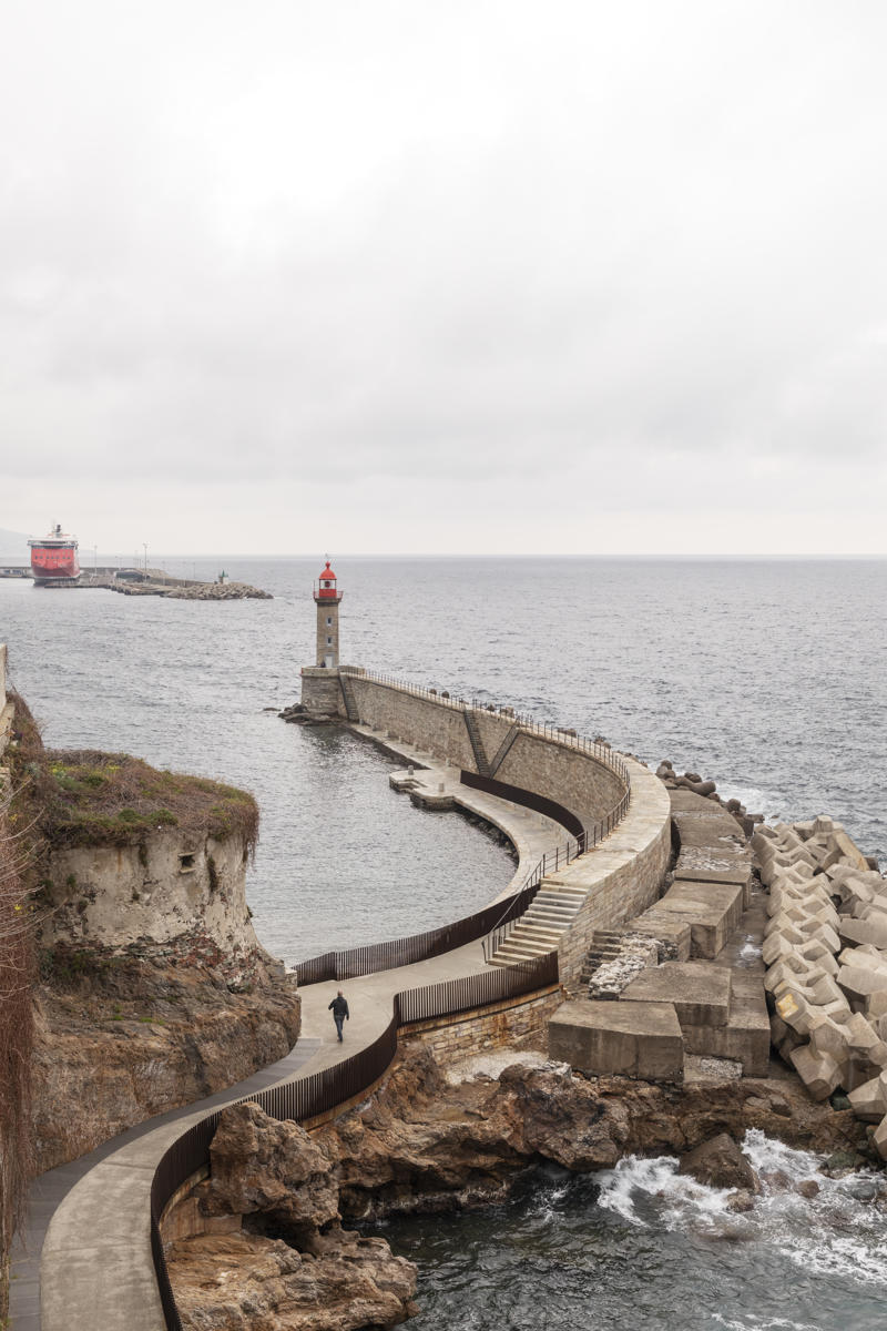 Tarihi anıt olarak tescillenmiş surların hemen altında konumlanan bu yol, kıyının doğal hatlarını takip ederek yayalara kayalık uçurumlara doğrudan ulaşım sağlıyor. Çevreye entegre olarak bu bağlantıyı mümkün kılan yürüyüş yolunun asıl gücü, yeni mekanlar yaratmaktan ziyade mevcut alanları herkes için erişilebilir kılmasında yatıyor. Deniz kıyısı boyunca kıvrılarak uzanan patika, kayalık teraslara giriş imkanı sunarak kıyı şeridini yüzücüler ve balıkçılar için dinlenme ve eğlence alanlarına dönüştürüyor.