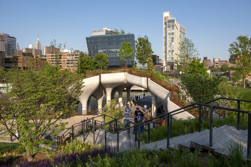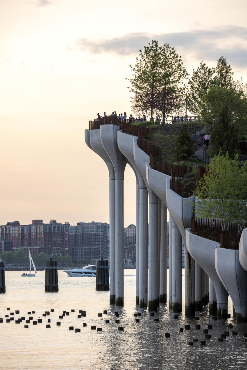 Heatherwick Studio, Little Island Park projesinde dekoratif bir nesne tasarlamak yerine, bir iskelenin ne olabileceğini yeniden ele almış. Strüktüre değil; suyun üzerinde olma, şehri geride bırakma ve yeşillikler içinde bulunma deneyimine öncelik verilmiş. Central Park’tan ilham alınmış. Geleneksel iskeleler, teknelerin yanaşması için birbirine paralel olarak tasarlanırken bu “iskele”nin aynı amaçla kullanılmayacak olması, tasarım ekibini farklı bir form arayışına itmiş. Manhattan’ın ortogonal sokaklarıyla tezat oluşturacak yeni bir topoğrafya yaratmak hedeflenmiş. Yapının, suyun üzerinde yüzen kıvrılmış bir yaprağı andıran ve köşelere doğru yükselen formu, alanı rüzgardan koruduğu gibi güneş ışığının deniz habitatına ulaşmasına da izin veriyor. Bu form, aynı zamanda, bir amfi yaratarak çeşitli performanslara olanak tanıyor. Little Island’da yaklaşık dört yüz farklı türde bitki ve New York iklimine uygun en az yüz farklı ağaç türü bulunuyor. Adanın topoğrafyasının bir sonucu olarak, güneşe ve rüzgara maruz kalma oranının farklılığı sebebiyle, her bir köşe farklı mikro iklimi temsil ediyor.