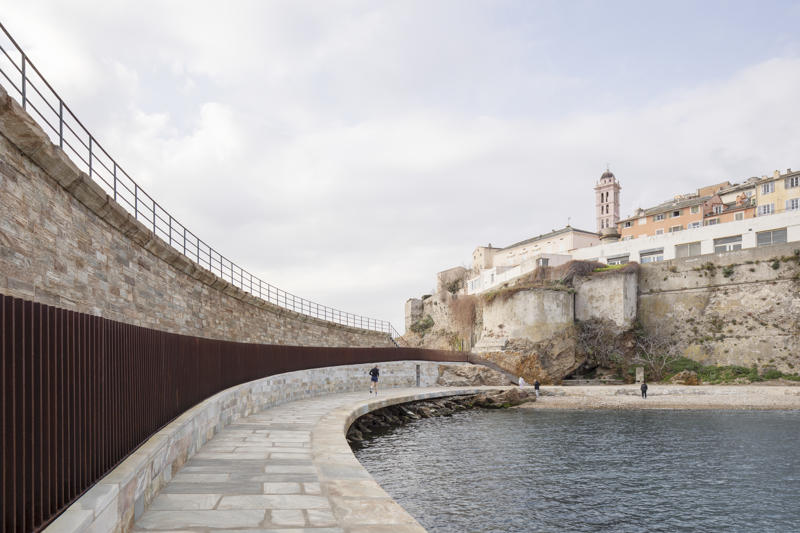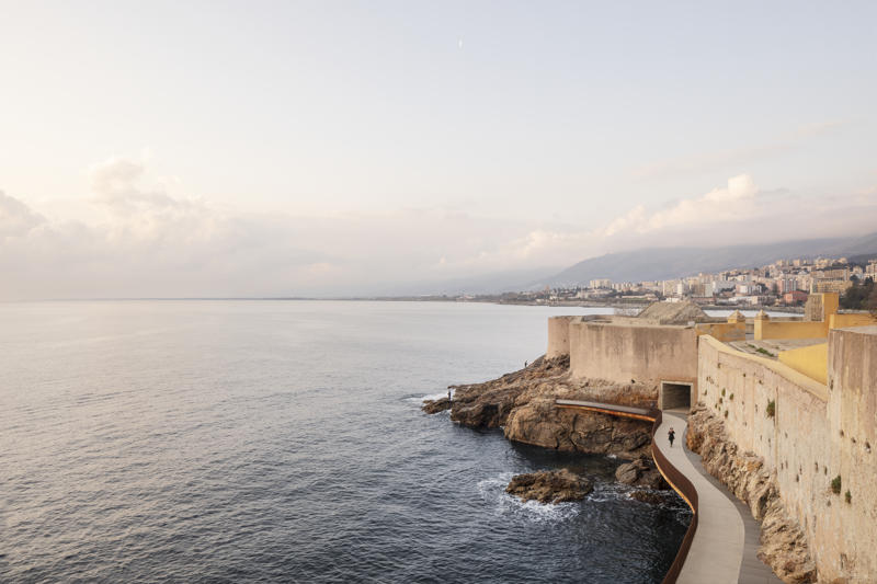 Bastia Kalesinin etrafındaki Aldilonda yürüyüş yolu, yayalar, engelliler ve bisikletliler için bir geçiş rotası olarak hizmet vererek sitadeli çevreliyor. Bu manzaralı kentsel mekan, Bastia’nın denizle olan bağını vurgulayan, suyun üzerinde asılı bir balkon hissi sunarak alanın genel niteliğini artırıyor. Geçen yüzyılda yapılan tünel inşaatı, kentin denizle olan bağlantısını kesintiye uğratmış. Ancak günümüzdeki Aldilonda, Bastia’nın kuzey ve güney bölgelerini yeniden birbirine bağlayarak kenti kıyısıyla tekrar buluşturuyor.