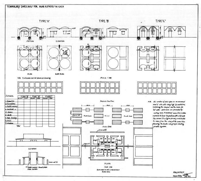 Eriha (Jericho) şehrinin Ürdün vadisine bakan taraftan kuzeydeki Jenin’e doğru devamında bir Filistin köyünde (Marj Na’je); 1948’de evlerinden çıkarılan ve sürülen çadırlarda yaşamak zorunda kalan Filistinliler için kübik form ve yerele özgü malzeme ile inşa edilmiş, mimar Hassan Fathy’nin tasarladığı barınma yerleri hala kullanılmakta (Resim 1).