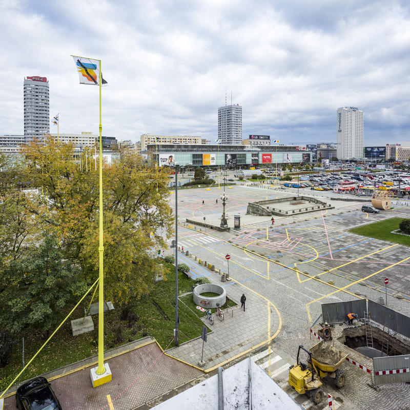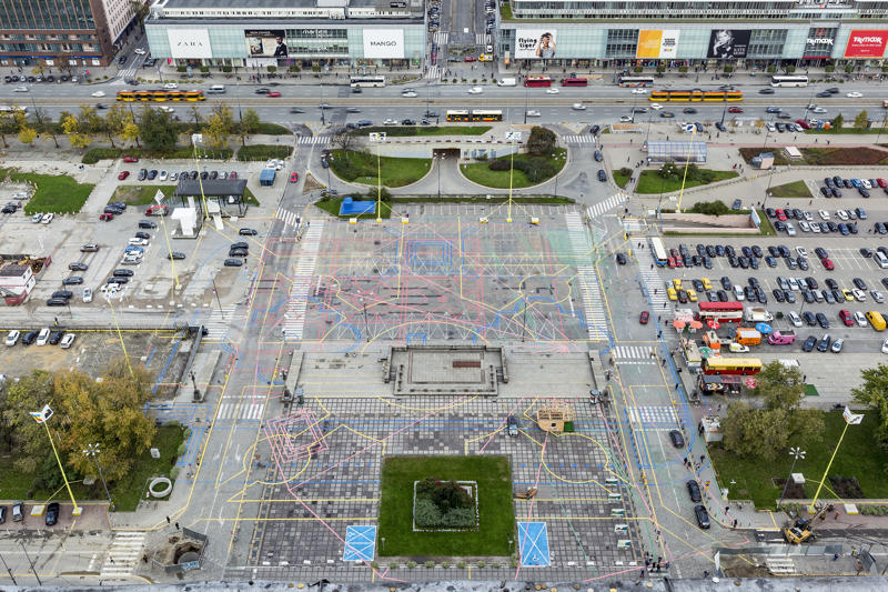 BudCud, ‘’Warsaw Under Construction” festivalinin 9. edisyonu için Varşova’daki Parade Meydanı’nda ‘’Squares within Square’’ (Meydan İçinde Meydan) adlı bir renk müdahalesi, sekiz adet iskele direği ve ‘’The Square Post’’ adlı spekülatif arkeoloji pavyonundan oluşan büyük ölçekli bir enstalasyon gerçekleştirdi. Enstalasyon; parçalı prototipler, analojiler ve mekansal eskizler aracılığıyla gelecekteki Central Square’in (Merkez Meydan) karakterini ve boyutunu gösteriyor. Gelecekteki meydanın kuzeydoğu köşesini işaretleyen, geçmişin, bugünün ve geleceğin spekülatif arkeolojisinin açık bir pavyonu olan yapı; Marszałkowska Caddesi yakınında, Warszawa Tiyatrosu ve Modern Sanat Müzesi’nin tasarlanan yapılarının buluştuğu yerde konumlanıyor.