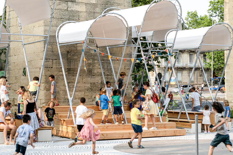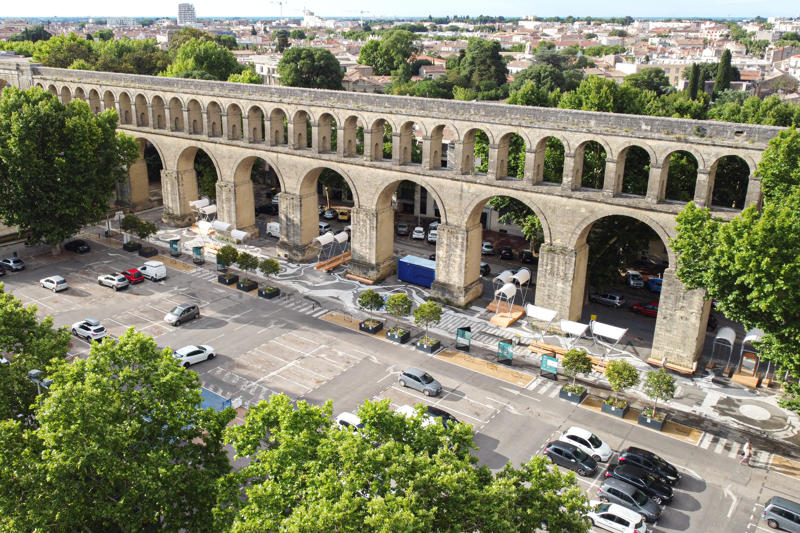Montpellier’deki Arceaux bölgesi, tarihi şehir merkezine yakın banliyölerde süregelen yaşam kalitesini temsil ediyor. Bölge; pazarı, mağazaları, kafeleri, mimari mirası ve okulları ile çocukların gelişimi için ideal bir yerleşim alanı olarak öne çıkıyor. Tek dezavantajı, merkezinde devasa bir açık otopark bulunan, belirsiz bir kamusal alan. Base peyzaj tasarım ofisi tarafından önerilen kamusal alan yenilemesi, şehir merkezini Arceaux bölgesine bağlamak için “çocuk ölçeğinde kent” temasını hayata geçirerek bu soruna yanıt veriyor.