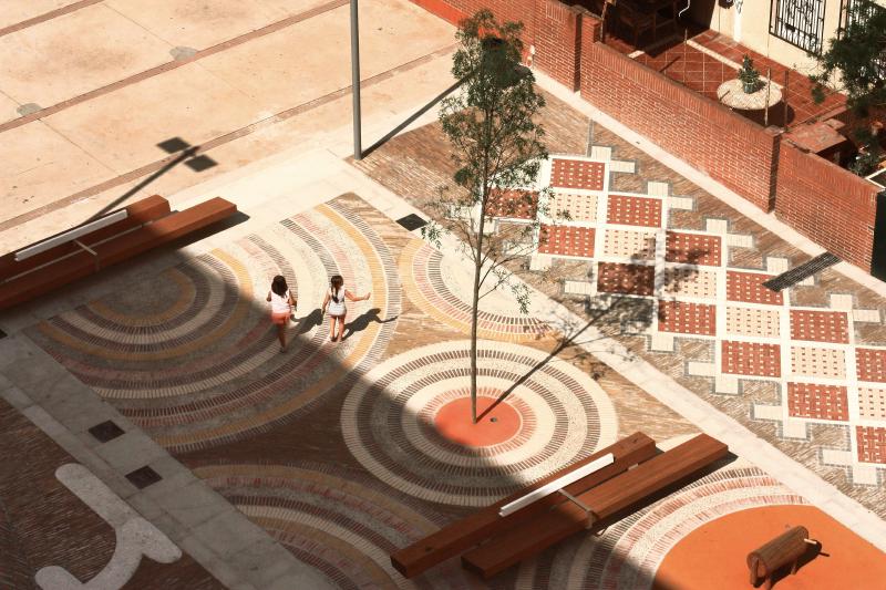 Mahallede yaşayan farklı kültürlerin “halıları” iç içe geçerek eşsiz bir kültürel mozaik oluşturuyor. Bu meydan tasarımında düşük teknolojik gereksinimler gerektiren yöntemler ve düşük maliyetli malzemeler kullanılmış. Projenin çözmesi gereken teknik zorluk, alandaki eskimiş ve kullanışsız hale gelmiş olan su tahliye sistemini düzeltmek ve tüm zeminlere erişimi sağlamak olmuş. Bu sorunlar, yüzde dört eğimin planda uygulanması ile çözülmüş.