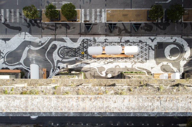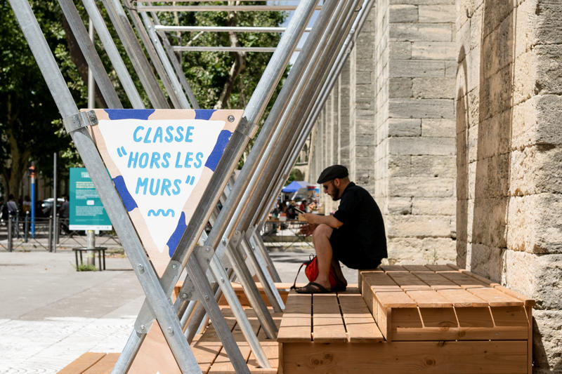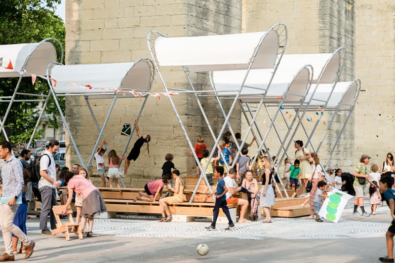 Bu gelişmelerden haberdar olarak tasarıma başlayan Collectif Parenthèse, çocuklara özgü tasarlanmış mekanlara itibar kazandıran ve böylece kamusal alanların kademeli olarak gelişimini mümkün kılacak bir geçici eğlence alanı öneriyor. Bu alan, Chaptal and Jeanne d’Arc okullarının ön bahçesinde, duvarların ötesinde açık tribünü ve iki masası, salıncakları, dans eden aynaları, kolektif oyun ve piknik alanları barındıran bir sınıf olarak tasarlanmış.