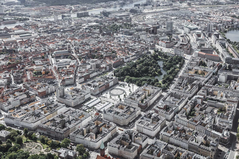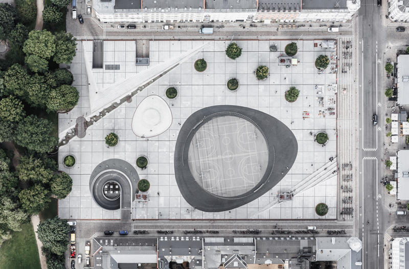 Israels Plads’ın (İsrail Meydanı) tarihi Kopenhag’ın dönüşüm tarihini yansıtıyor. Bu merkezi meydan bir zamanlar şehrin koruyucu surlarla çevrili bir halka halinde son bulduğu yerde bulunuyor. Şehir kademeli olarak genişledikçe, meydan canlı bir pazar meydanı haline gelmiş; ta ki 1950’lerde cansız bir otoparka dönüşene kadar. Yeni plaza mevcut cadde seviyesinin üzerine yükseltilmiş. Eskiden Israels Plads’a hakim olan ve şimdi yeraltı otoparkına yerleştirilen çok sayıda arabanın üzerinde duruyor.