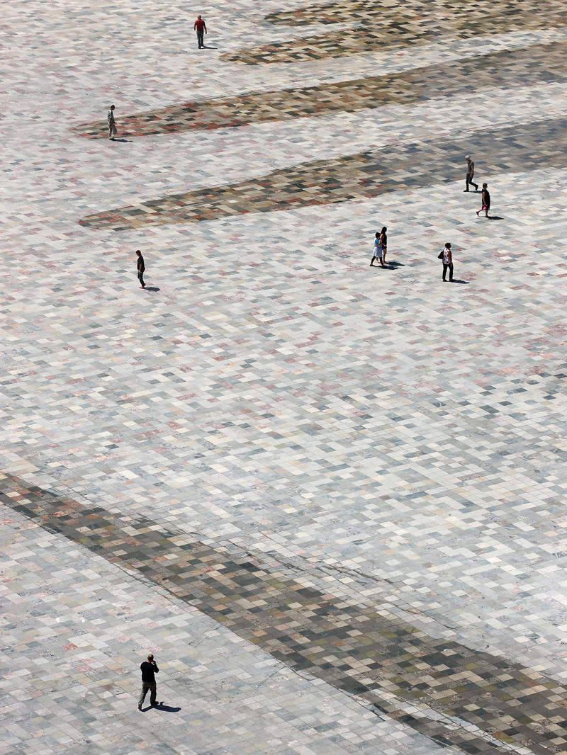 Arabalar kelimenin tam anlamıyla yeni kentsel halının “altına süpürülüyor.” Plaza aynı zamanda iki dünya, şehir ve komşu park arasında bir geçiş işlevi görüyor. Doğu ve batıya doğru meydan yükseltilmiş ve nişler sağlamak için yer yer katlanmış. Ayrıca, surların bir parçası olarak tarihi geçmişine atıfta bulunan dikkat çekici bir ifadeye sahip. Yüzey, geniş bir kentsel oyun ve aktivite alanı olarak işlev görüyor.