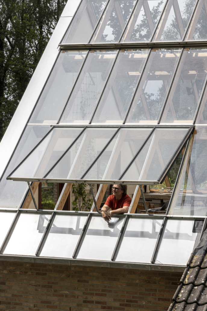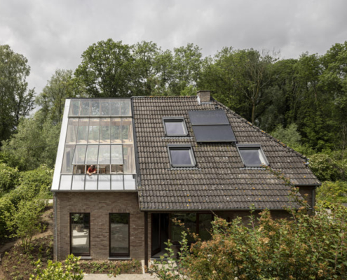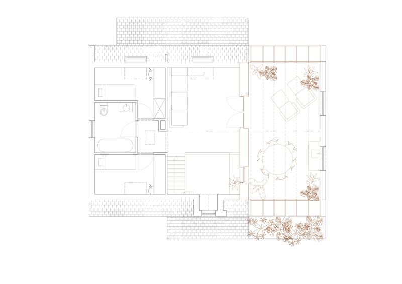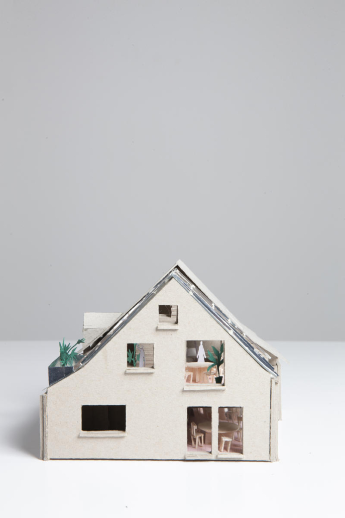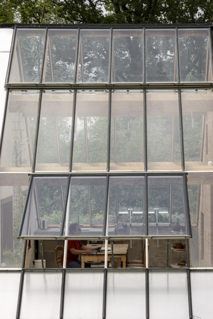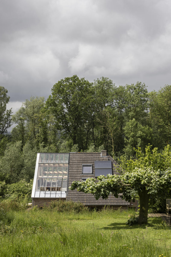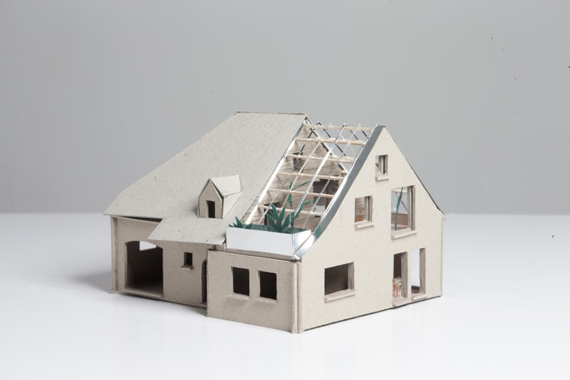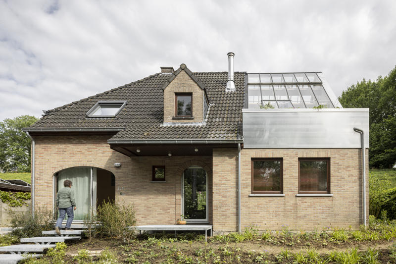 Ofis, öncelikle evin mevcut organizasyonuna ve çevreyle olan kopukluğuna yönelik eleştirel bir analiz gerçekleştirmiş. Ardından mimarlar, yapının geleneksel düzeninden kurtulmak için evi “yararak açma” yöntemini benimsemişler. Bu yaklaşım, aynı zamanda evi daha kompakt hale getirme yani yoğunlaştırma (densifikasyon) amacını taşıyor. Çocukların eski yatak odaları kaldırılarak yerine, kalın sıkıştırılmış toprak duvarla çevrili bir kış bahçesi inşa edilmiş. Bu duvar, sahip olduğu termal kütle sayesinde tampon görevi görüyor; soğuk günlerde güneş ışığı kış bahçesini ve duvarı ısıtarak iç mekana sıcaklık veriyor; sıcak günlerde ise bu ısıyı içeriden uzak tutarak serinlik sağlıyor.
