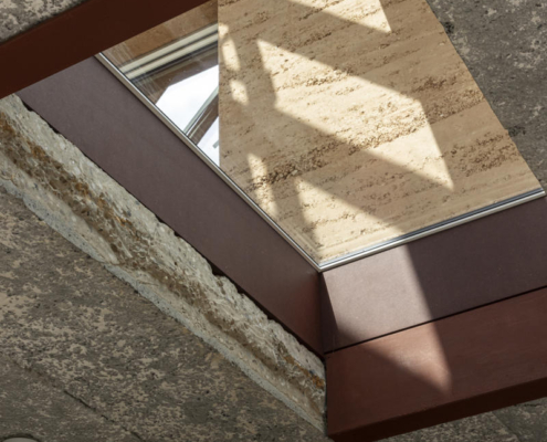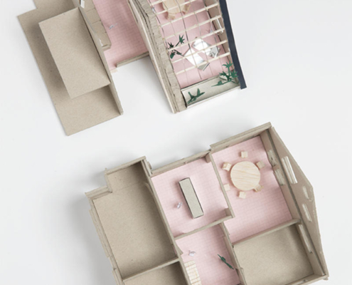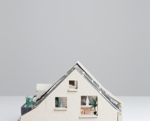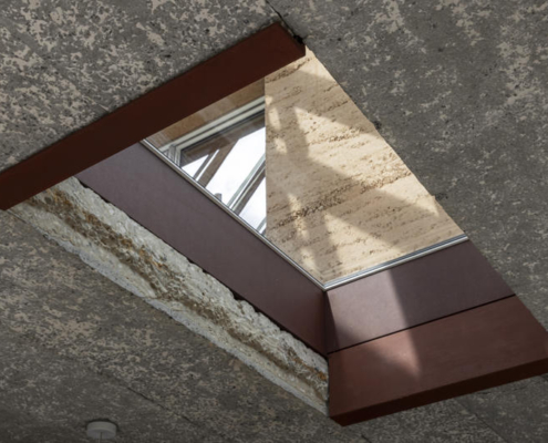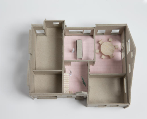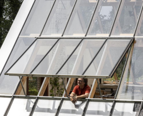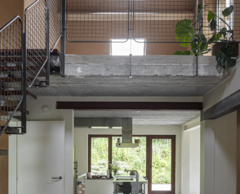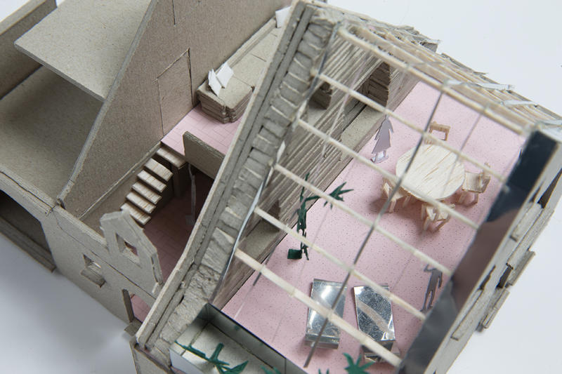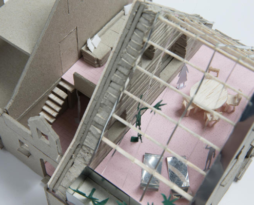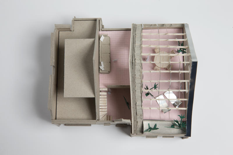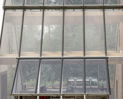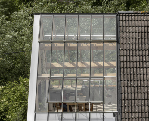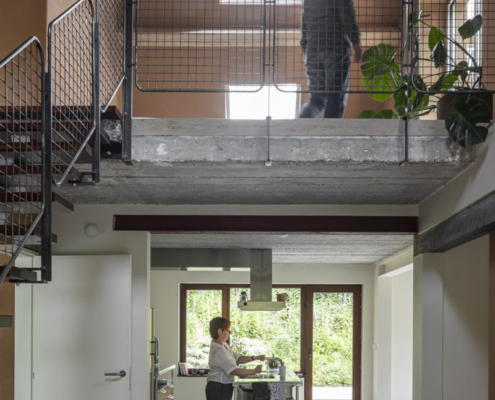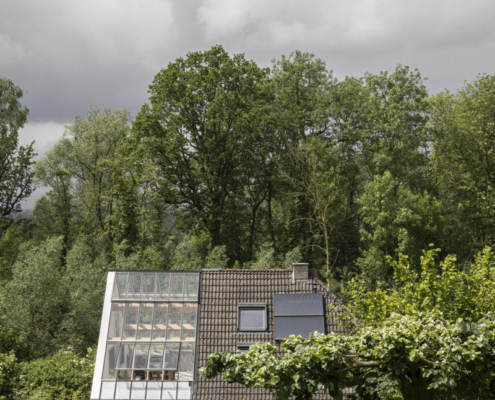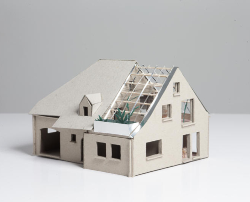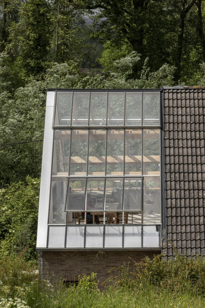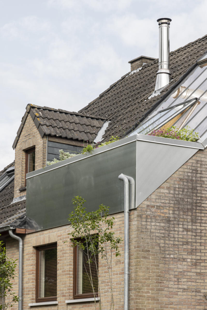 Ofis, öncelikle evin mevcut organizasyonuna ve çevreyle olan kopukluğuna yönelik eleştirel bir analiz gerçekleştirmiş. Ardından mimarlar, yapının geleneksel düzeninden kurtulmak için evi “yararak açma” yöntemini benimsemişler. Bu yaklaşım, aynı zamanda evi daha kompakt hale getirme yani yoğunlaştırma (densifikasyon) amacını taşıyor. Çocukların eski yatak odaları kaldırılarak yerine, kalın sıkıştırılmış toprak duvarla çevrili bir kış bahçesi inşa edilmiş. Bu duvar, sahip olduğu termal kütle sayesinde tampon görevi görüyor; soğuk günlerde güneş ışığı kış bahçesini ve duvarı ısıtarak iç mekana sıcaklık veriyor; sıcak günlerde ise bu ısıyı içeriden uzak tutarak serinlik sağlıyor.
