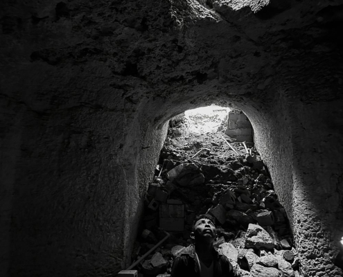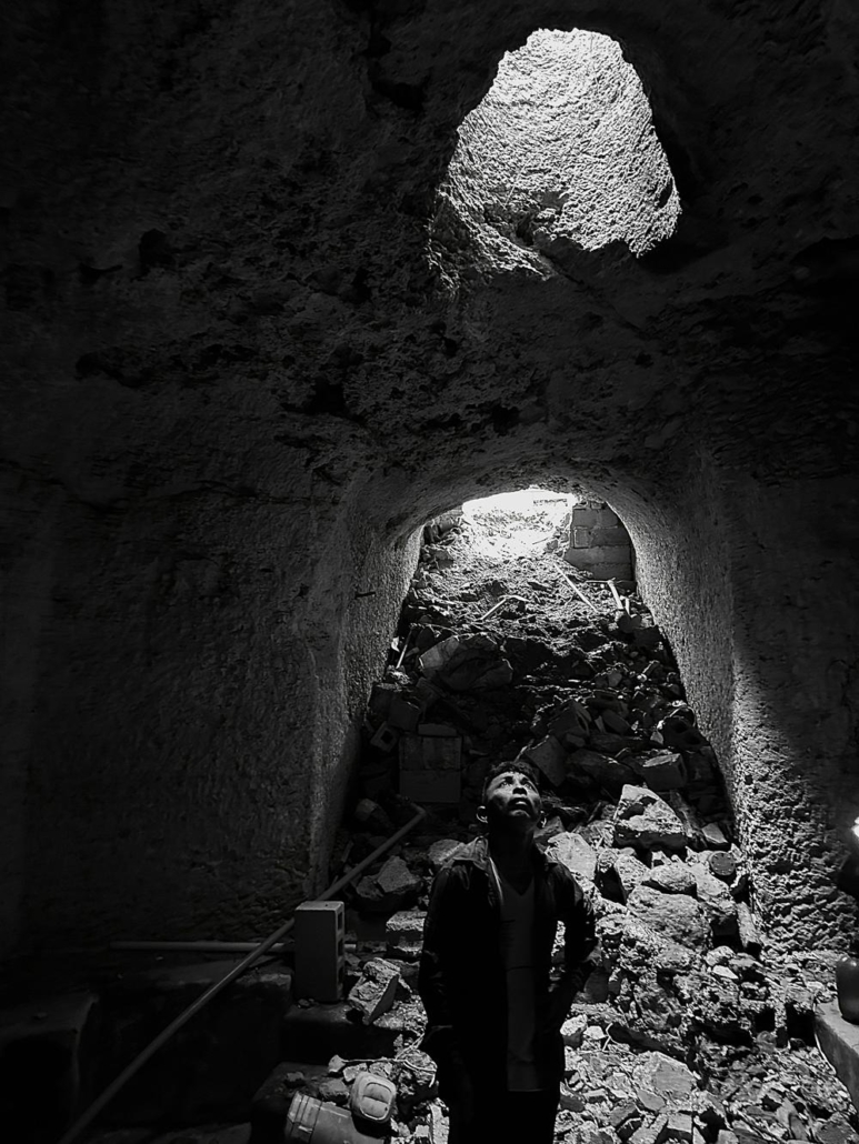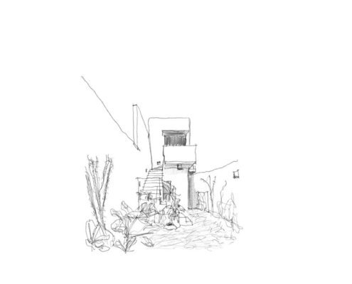 Portal 62, sabit planlarla tasarlanan projelerin aksine adım adım şekillenen bir sürece sahip. Beklenmedik bir keşiften doğan kompakt ev, arazinin altındaki gizli bir mağarayı andırıyor. Başta sıradan bir müdahale olarak başlayan süreç, yerin altındaki katmanlarla tanımlanan bir mimari deneyime dönüşmüş. İlk saha temizliği sırasında, mühürlenmiş bir kuyu ortaya çıkmış. Altında ne olduğu bilinmese de tasarımcılar, toprağın daha fazlasını barındırdığını hissettiklerini aktarıyorlar. Arazinin arka tarafında yapılan kazıda, bir duvarla kapatılmış bir merdivenle karşılaşılmış. Duvar yıkıldığında, molozla dolu bir mağaranın açığa çıkması tüm tasarım sürecini değiştirmiş. Yapının kapladığı alan yalnızca 70 m²’ye indirilmiş.