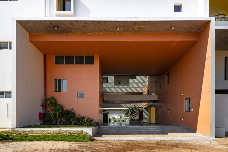 Yapıda zemin kaplamaları, yerel olarak temin edilen soğuk yüzeyli kota taşı ile granitin birlikte kullanılmasıyla oluşturulmuş. Sınıflarla avlular arasındaki geçişi, alüminyum sürgülü kapılar sağlıyor. Dış avlular, yerel tandoor taşı ile döşenmiş.