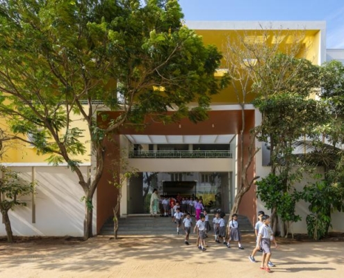 Spacefiction Studio imzalı, tasarımı gurukul geleneğinden ilham alan Rainbow International School, çağdaş eğitim yaklaşımlarını doğayla kurduğu güçlü ilişki ve mekansal esneklikle destekleyerek öğrenmeyi sınıfın dışına taşıyor.
