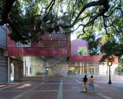 Karamuk Kuo tarafından tasarlanan Cannady Hall, terakota cephesi, açıkta bırakılmış strüktürü ve kampüsün tarihi çatı dokusunu yeniden yorumlayan kütleleriyle Rice University Mimarlık Okulu’na çağdaş bir üretim ve sergileme mekanı olarak ekleniyor.