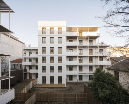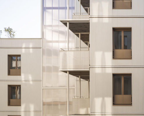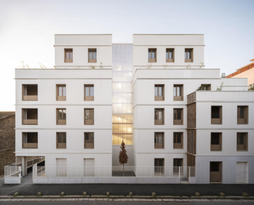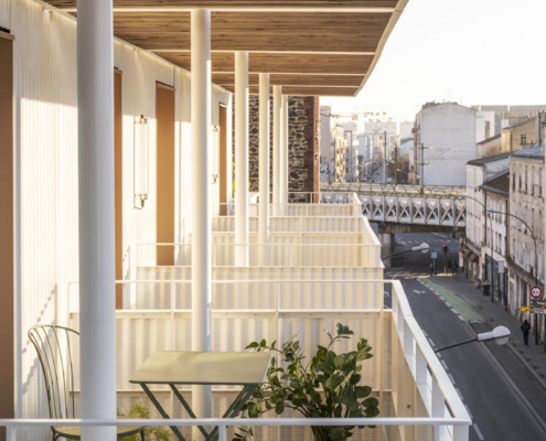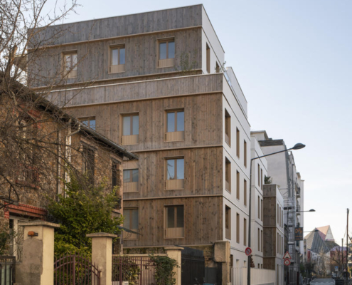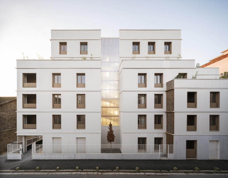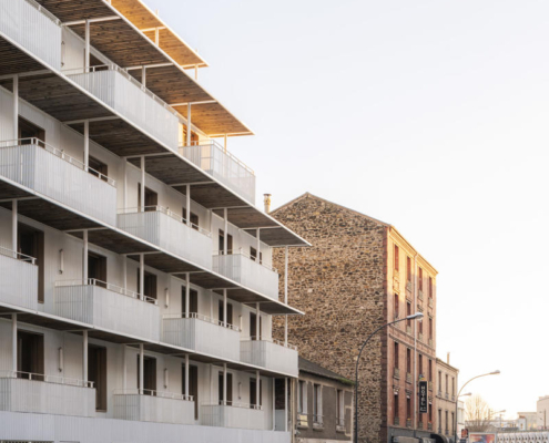 Rue Fraizier ve Rue du Landy üzerinde konumlanan yeni konut kompleksi, yirmi dört yıl önce harap bir binayı yok eden trajik yangından sonra mahallenin yeniden canlandırılmasında önemli bir adımı temsil ediyor. Saint-Denis’te teslim edilen ilk Fransız paylaşımlı mülkiyet sözleşmesi (BRS-Bail Réel Solidaire) kapsamında inşa edilen bu yapı, mimari karakteri kentsel dokuya uyumlu bir şekilde bütünleştiriyor.
