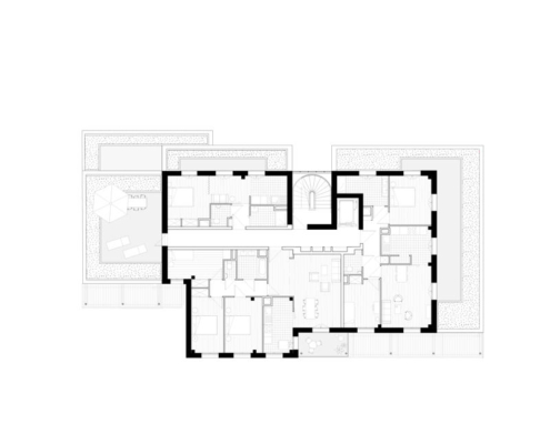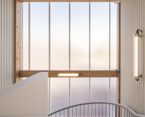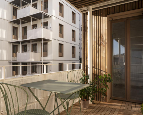 Konut bloğunda, Rue du Landy ve Rue Fraizier’den erişilebilen iki pasajlı lobiden görülebilen geniş bir bahçe bulunuyor. Konutların neredeyse tamamı bu “yeşil akciğerin” avantajlarından yararlanıyor. Ayrıca proje, Plaine Commune Habitat ile iş birliği içinde tasarlanan ortak alanlara özel önem veriyor. Geniş ve davetkar giriş holü, sakinlerin duraklaması ve karşılaşması için bir topluluk mekanı işlevi görüyor. Her binanın çatı bahçeleri ise dinlenme ve sosyal paylaşım alanları sunuyor. Bu proje aracılığıyla DREAM ofisi, sakinlerine yeniden tasarlanmış, güvenli ve kapsayıcı bir yaşam ortamı sunuyor.