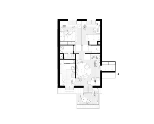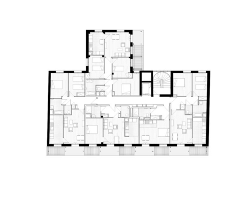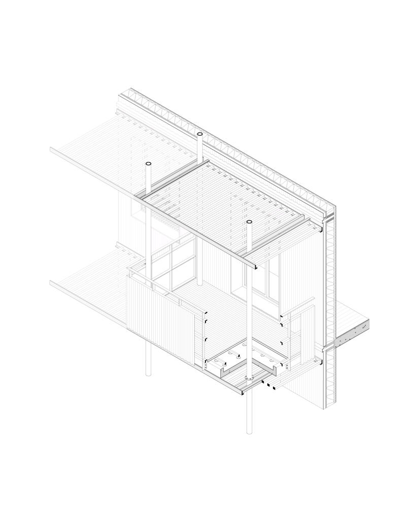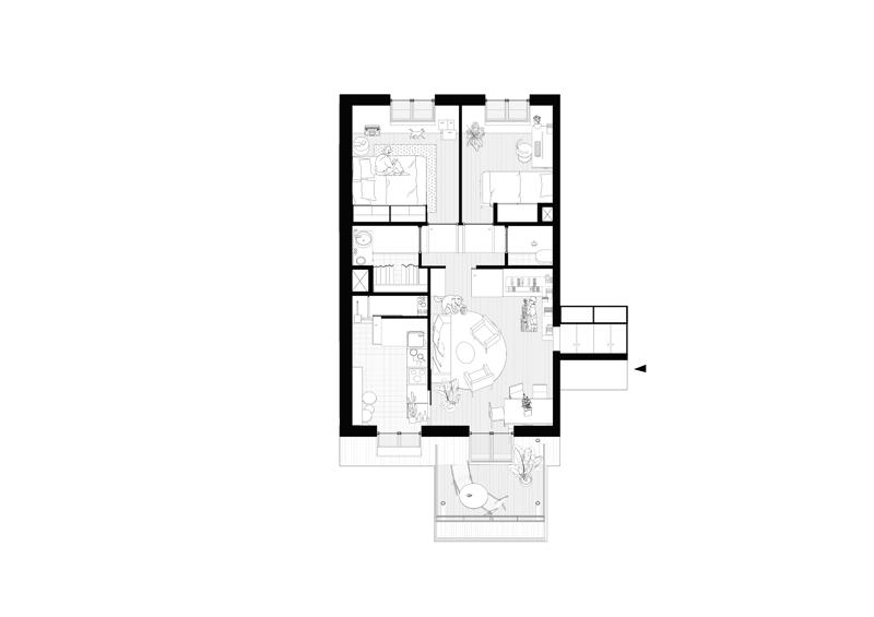 Toplam kırk dört konuttan oluşan projede yirmi ikisi sosyal kiralama, yirmi ikisi ise sosyal ev sahipliği için ayrılmış. Proje, bireysel evlerin niteliklerini kolektif yaşam alanlarına aktarmayı amaçlıyor. Her bir daireye özgü tipolojiler ile oluşturulmuş çoğu çift cepheli ve çok yönlü olan birimler, kaliteli açık alanlarla destekleniyor.