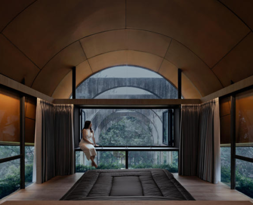 Doğal topoğrafyaya minimum müdahaleyle entegre edilen ve geçirgen sınırlar aracılığıyla iç-dış mekan sürekliliğini sağlayan, RAD+AR tasarımı Sanctuary Tunnel Garden, modernist tasarım ilkeleriyle kutsal alan tipolojisini yeniden tanımlıyor.