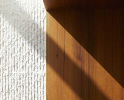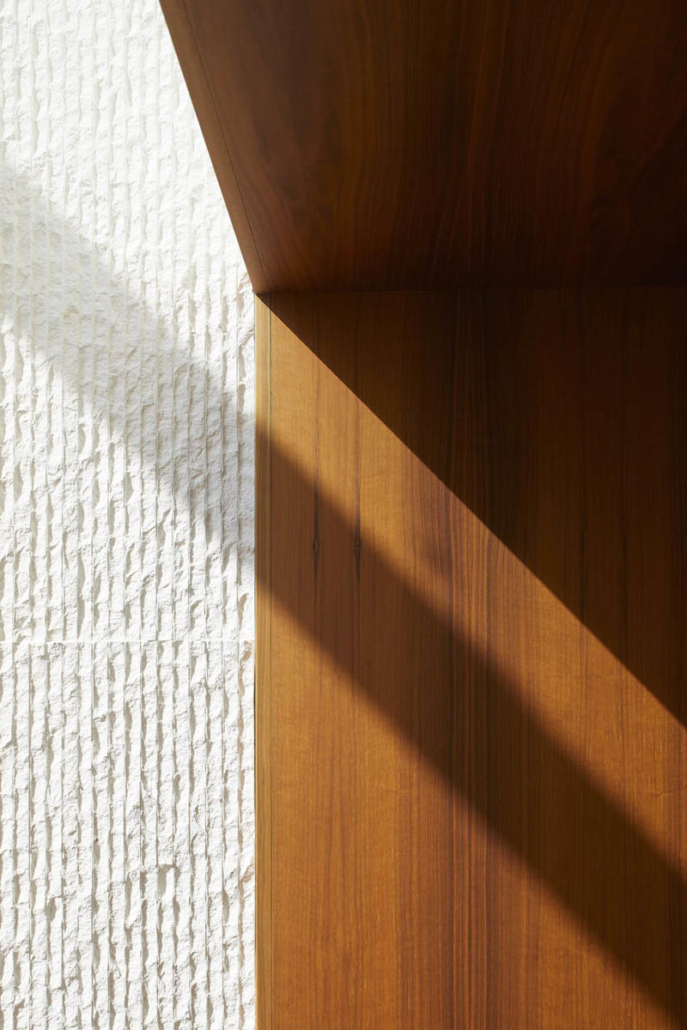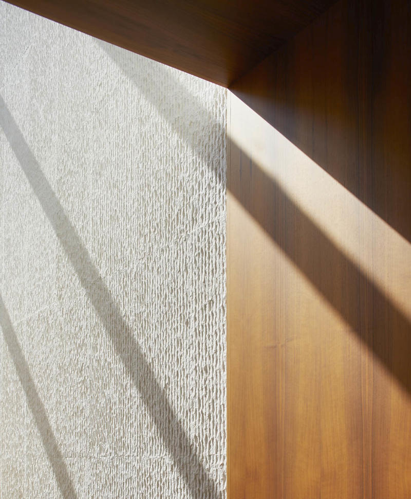 Ziyaretçi alanlarının iç mekanları, Tihany Design tarafından bölgenin şarap üretim geleneklerinden esinle tasarlanmış. Doğal ahşap yüzeyler, yerel kireçtaşı kaplamalar ve çelik detaylar, zarif ama davetkar bir atmosfer sunuyor. Malzeme paleti bağların özünü yansıtıyor: Zamansız, doğal ve rafine. Şaraphanenin operasyonel alanları (presleme, şişeleme, etiketleme) dikdörtgen bir düzenle kurgulanmış ve fermantasyon mekanlarıyla bağlantılı olarak düzenlenmiş. Üzümlerin geldiği ve şarapların gönderildiği tünel, yapının uzun ekseni boyunca uzanıyor; aynı zamanda mekanik donanımları barındırıyor. Mahzenin soğuk, metalik estetiği, yukarıdaki sıcak tonlarla tasarlanmış canlı ziyaretçi mekanlarıyla güçlü bir karşıtlık kuruyor.