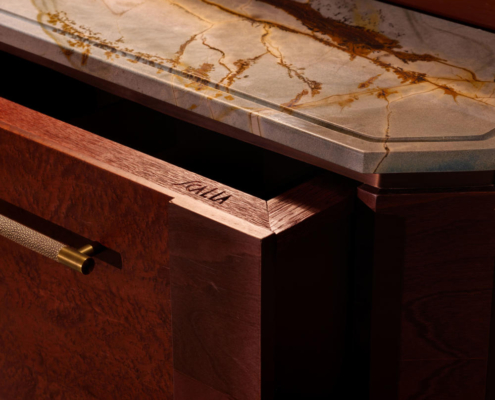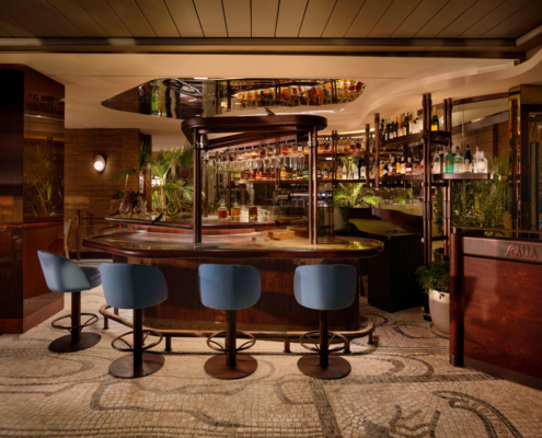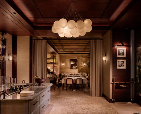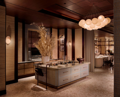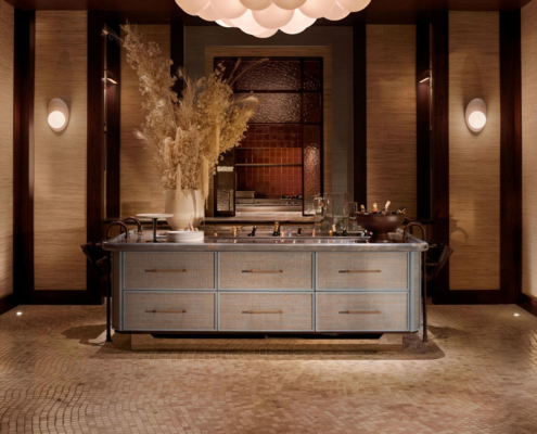 Scalla projesinde bar alanı, yalnızca bir sosyal buluşma noktası değil, aynı zamanda farklı açılardan algılanabilen ve kullanıcı hareketini yönlendiren mimari bir referans noktası oluşturuyor. Böylece ziyaretçiler, mekan içinde bulundukları konumdan bağımsız olarak, barı bir işaret noktası alarak rahatça yön bulabiliyor. URBANJOBS’ın kurucusu Murat Dede, mekan içindeki deneyim yolculuğunu şu şekilde anlatıyor: “Kullanıcılar WC’ye doğru ilerlerken önce barın, ardından mutfak geçiş penceresinin önünden ilerleyip daha yüksek bir seviyeye çıkarak algısal bir değişim yaşarlar. Geri dönerken iç mekanla yeniden etkileşime girer ve son olarak tekrar bar ile karşılaşarak mekansal sürekliliği hissederler. Merdivenlerden inerken önce şarap dolabını, ardından tekrar mutfak geçiş penceresini çerçeveleyerek mekanın temel mimari unsurlarını belleklerinde pekiştirirler. Bu bilinçli mekansal kurgulama, dolaşımı yalnızca bir hareket yolu olmaktan çıkarıp çok katmanlı bir deneyime dönüştürür.”