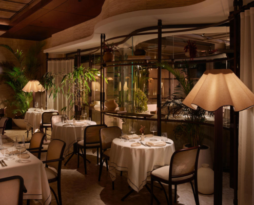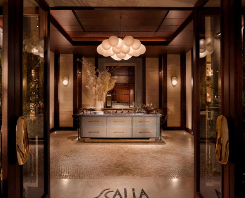 URBANJOBS tasarımı Scalla, fiziksel sınırların yeniden tanımlanmasıyla kurgulanan bir restoran projesi. Scalla, kolon akslarına hizalanmış rasyonel bir cephe yerine, Akdeniz’in kıvrımlı sahillerinden ilham alan ve “cam perde” adı verilen eğrisel bir çerçeve sistemi ile tasarlanmış. Nefes alabilen, akışkan ve esnek bir kabuk olan bu yüzey, sert çizgilerle belirlenen sınırların aksine, içe kıvrılıp farklı işlevler üstlenirken kimi zaman da dışa açılarak alanın verimli kullanımına katkıda bulunuyor.