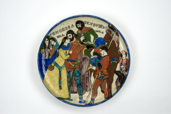 Minas Avramidis’in 1910’lu yıllarda ürettiği, 19. yüzyıl sonrasında unutulmaya yüz tutmuş figürlü anlatı geleneğini Kütahya çiniciliğine yeniden kazandıran ve dört sahneden oluşan Genovefa Hikayesi temalı seramik tabak serisi, serginin odak noktalarından biri, Karamanlıca yayımlanmış bir tefrikada anlatılan ve sadakat, sabır ve bağışlama gibi temaları işleyen Genovefa’nın öyküsünü sahne sahne resmeden bu seride hikaye, Avramidis’in gözünden dramatik ve estetik bir yorumla yeniden şekilleniyor. Figürlü anlatım geleneğini Kütahya çiniciliğinde nadiren görülen bir biçimde canlandıran bu eser grubu, Minas’ın yalnızca teknik becerisi değil, anlatı gücü ve tarihsel referanslarıyla öne çıkıyor.