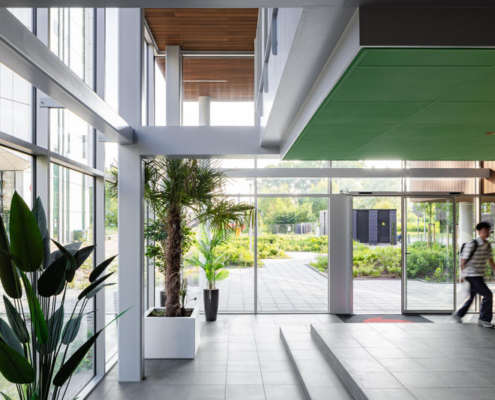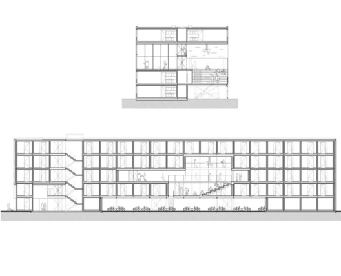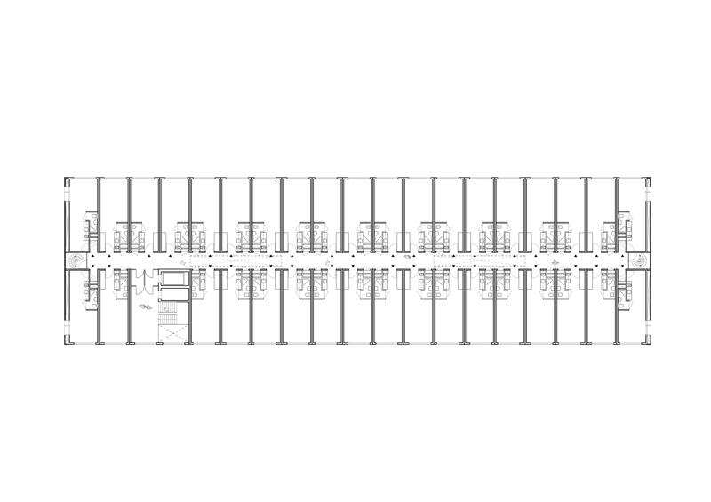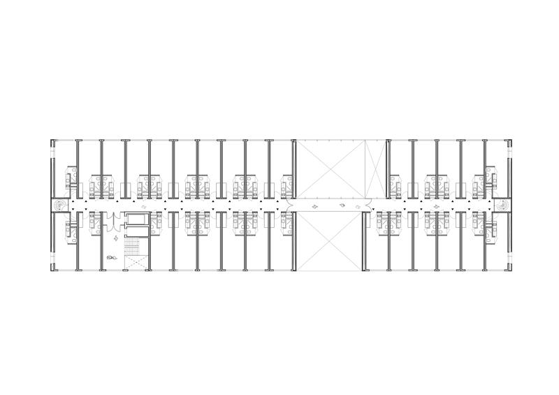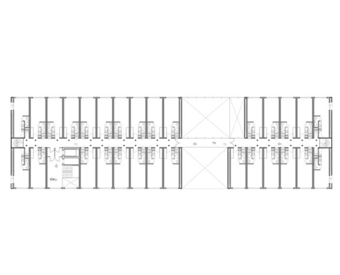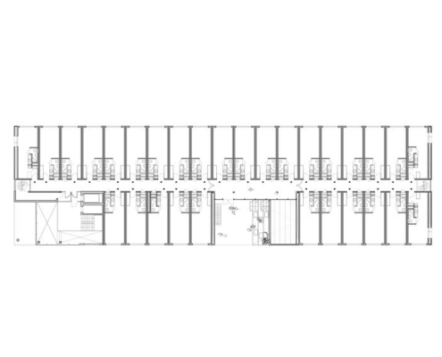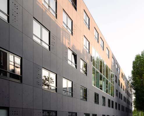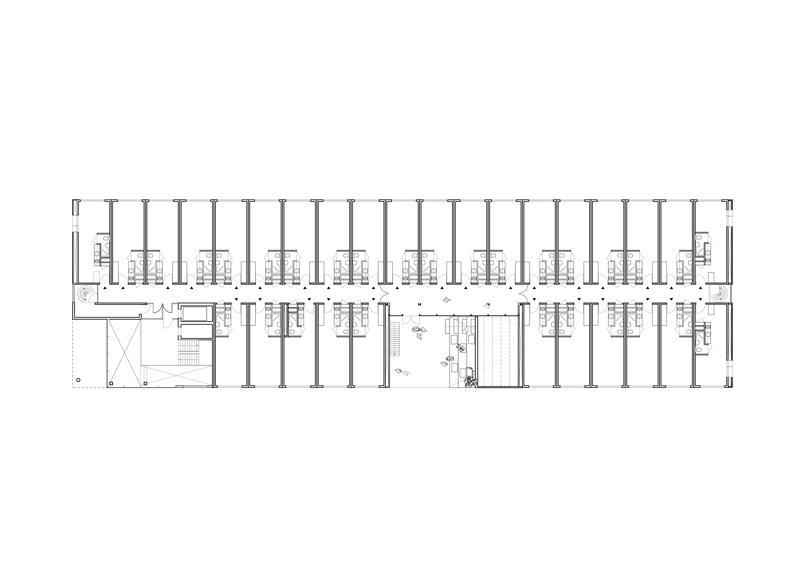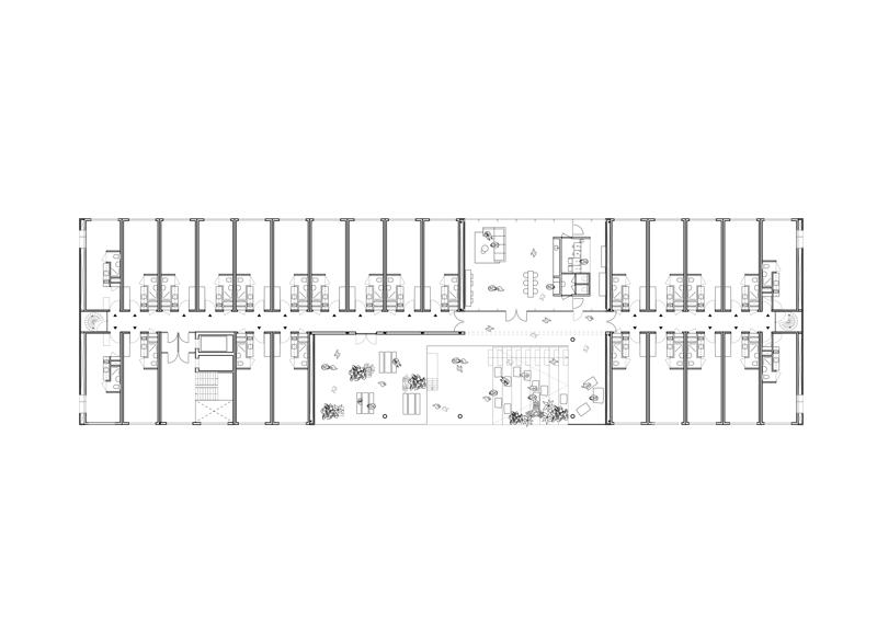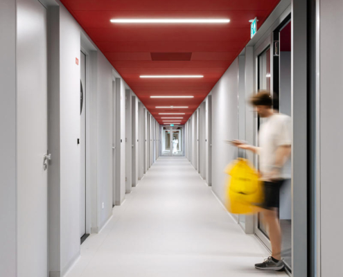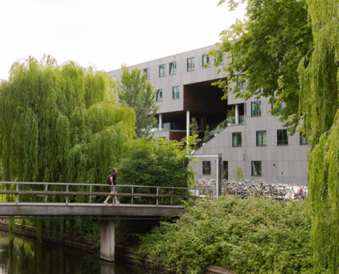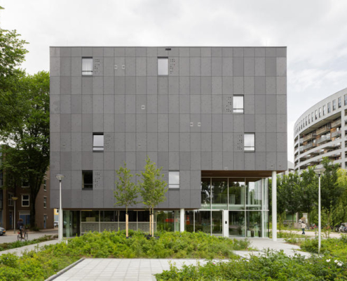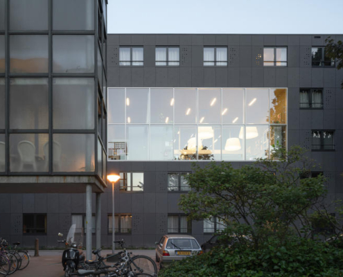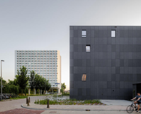 Balthasar van der Polweg boyunca uzanan yapı, Carel Weeber’in katı kent dokusundan koparak, çevresine hem öğrencileri hem de kampüs topluluğunu davet eden beklenmedik bir mimari obje olarak konumlanıyor. Ön üretim sistemlerinin kullanımı, özenle tasarlanmış ortak alanları ve sürdürülebilirlik yaklaşımlarıyla Suite 9, öğrenci konutlarının hem verimli hem de yüksek mimarlık niteliğine sahip olabileceğini ortaya koyuyor.