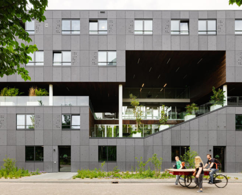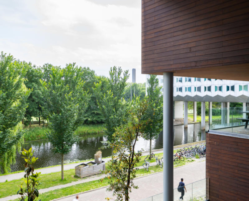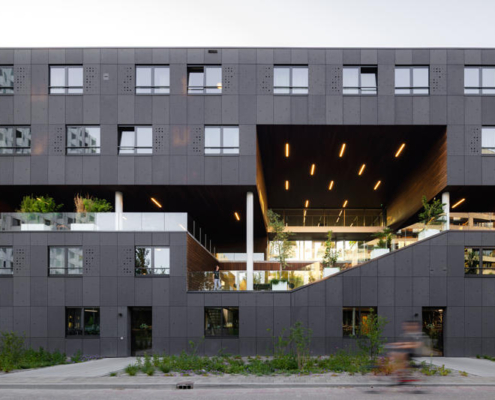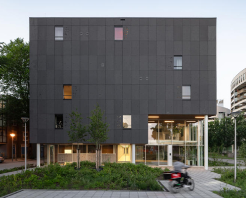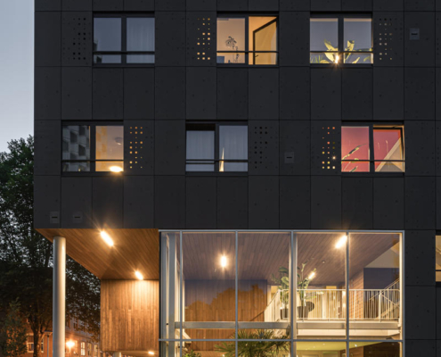 Studioninedots tarafından tasarlanan Suite 9, modüler üretim teknolojisini sosyal yaşamla birleştirerek Delft Teknoloji Üniversitesi’nin kampüsünde öğrenci konutlarına yeni bir mimari kimlik kazandırıyor.