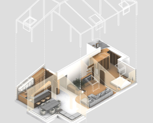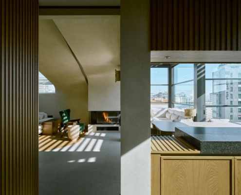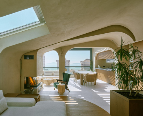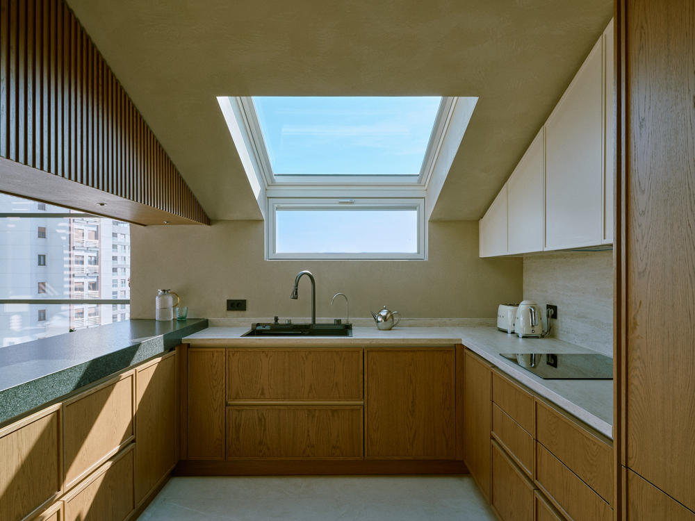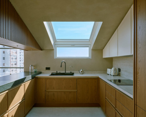 T.27, Suadiye’de Adalar manzarasına hakim, iki katlı bir apartman dairesinin çatı katının renovasyon projesi. Yaklaşık 90 metrekarelik çatı katının mevcut yaşam alanına eklenmesiyle, üst kata çıkıldığında iç ve dış mekanı bütünleştiren bir teras deneyimi oluşturulması hedeflenmiş.