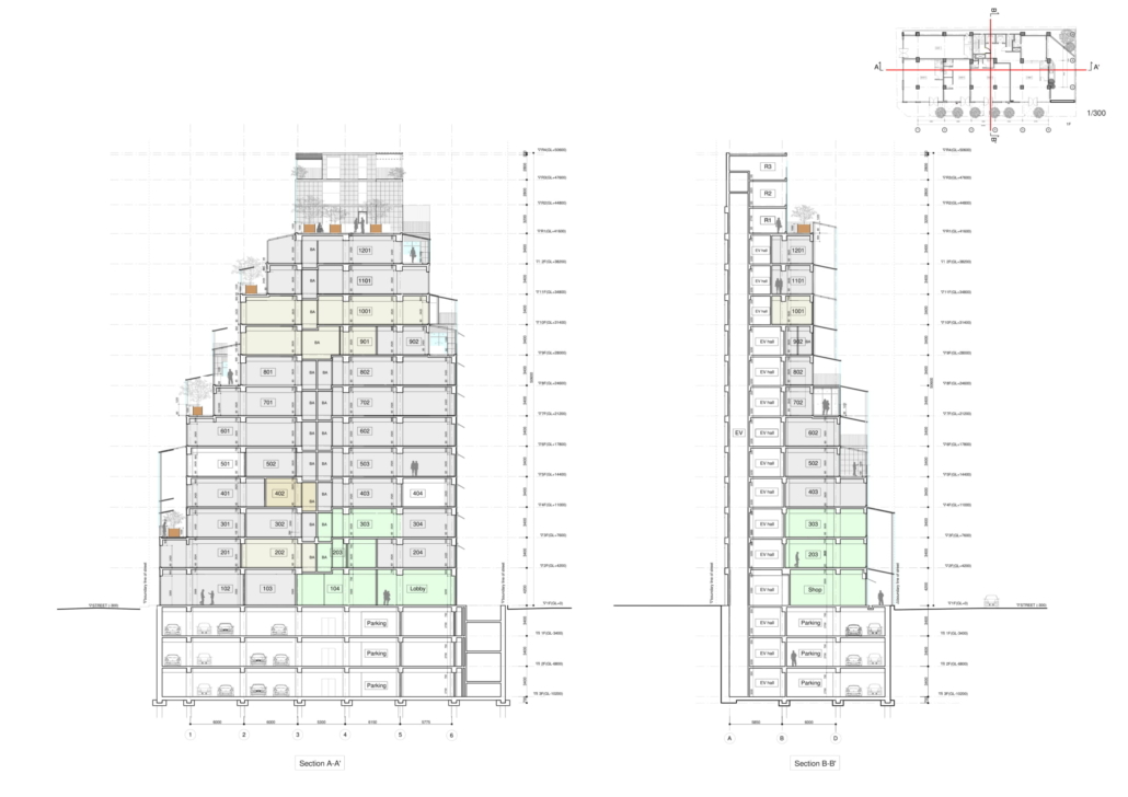 Taipei Roofs, Asya iklimine ve kültürüne uygun, çok katlı ve yüksek bir yapı prototipi.