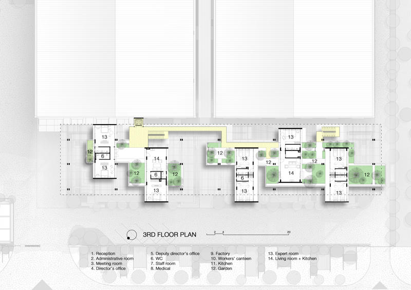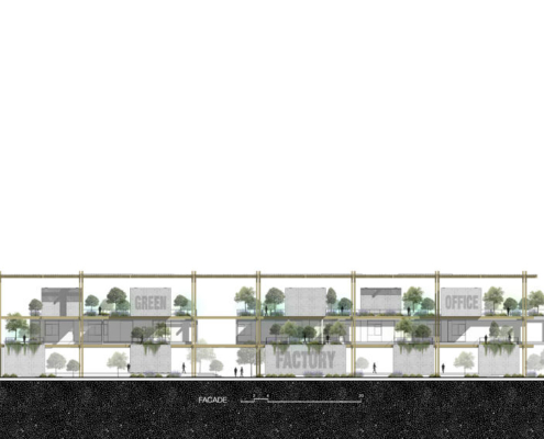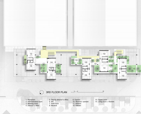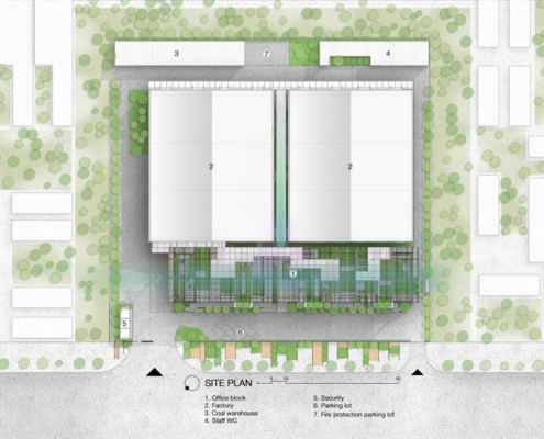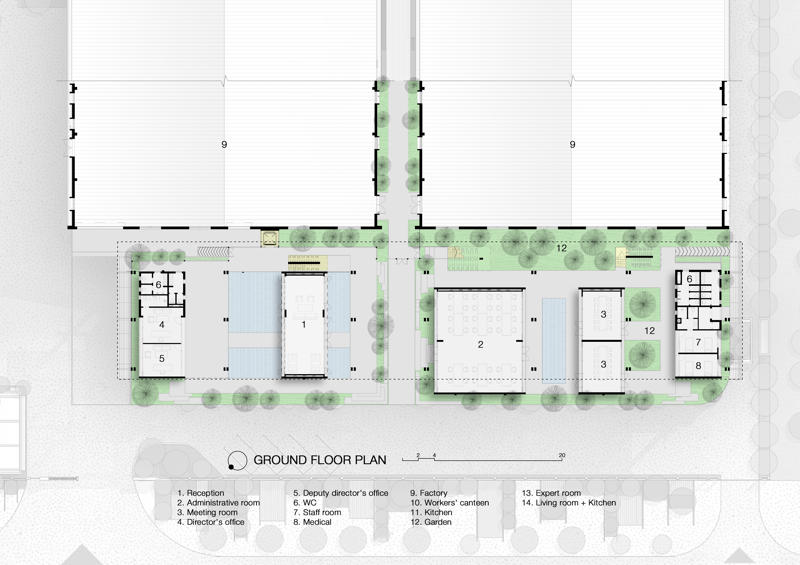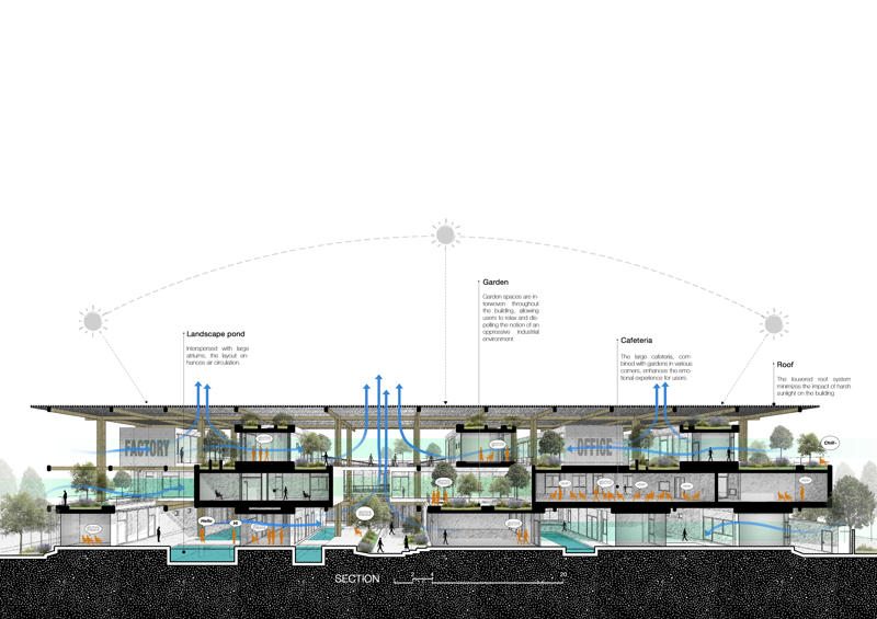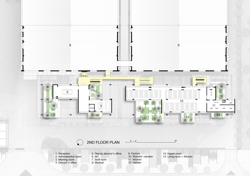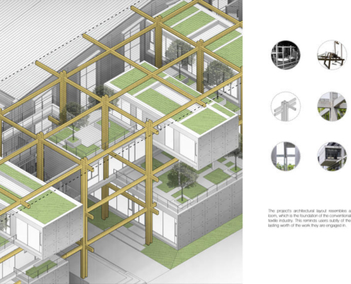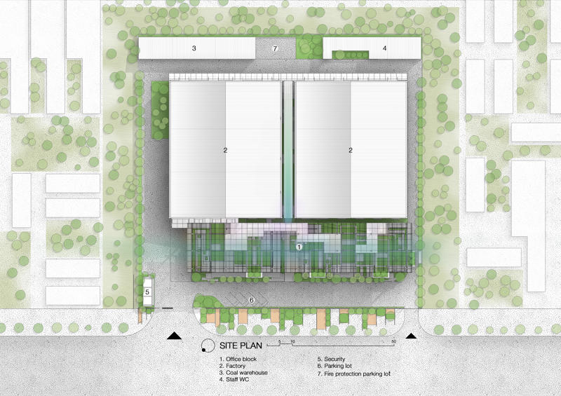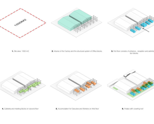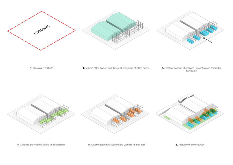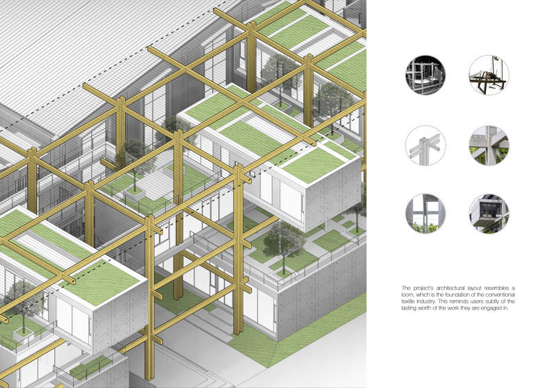 Tekstil Fabrikası Ofisi, ülkenin en önemli sanayi bölgelerinden birinde yer alan bir konfeksiyon üretim tesisinin idari birimi. Bölge haftanın yedi günü, günün 24 saati çalışıyor ve yerel topluluk için istihdam açısından büyük bir rol oynuyor. Ancak yoğun iş gücü nedeniyle, bu tür alanlarda çalışma koşulları ve mekansal nitelik uzun süredir ihmal edilmiş, çoğu yalnızca asgari gereklilikleri karşılar durumda kalmış.