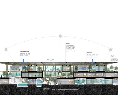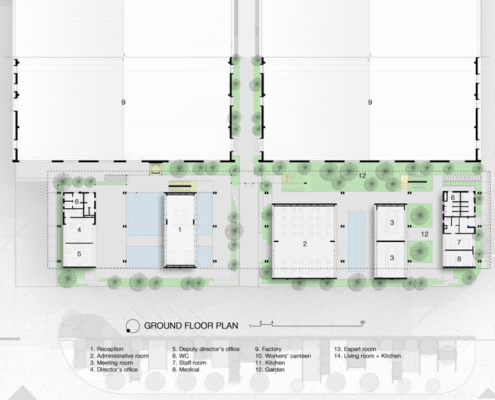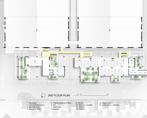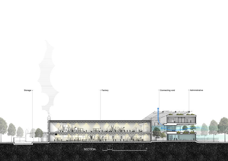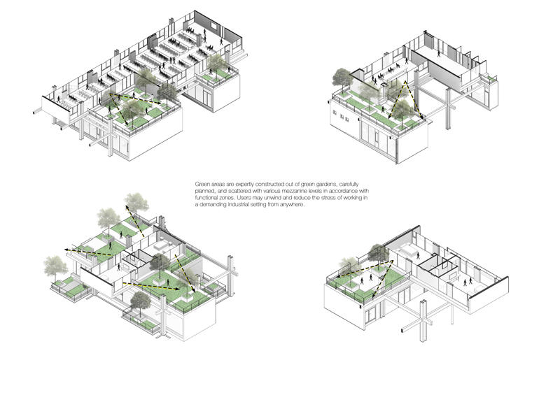 Bu proje, tipik bir sanayi yapısının ötesine geçerek fabrika ofisinin ne olabileceğini yeniden tanımlıyor; doğayla ilişki kuran, insanı ilhamla buluşturan ve bedensel ile ruhsal anlamda besleyen bir mekan sunuyor. Endüstriyel üretimin durmaksızın işleyen ritmi arasında, kullanıcı deneyimini merkeze alan yeni bir yaklaşım sunuyor; işlevsel gereksinimleri karşılarken insan ruhunu da güçlendiren bir ortam yaratıyor.