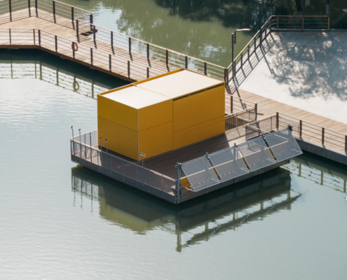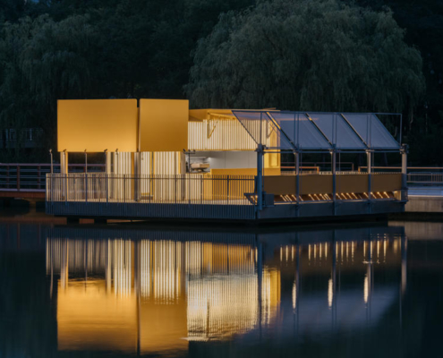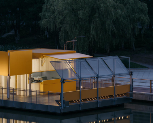 SoBA tasarımıyla Bloom Box, göl kıyısındaki unutulmuş bir alanı yeniden hayata geçirerek; geçirgen ara mekanları üzerinden kullanıcı, doğa ve kentsel akış arasında yaşayan, esnek ve davetkar bir kamusal durak oluşturuyor.