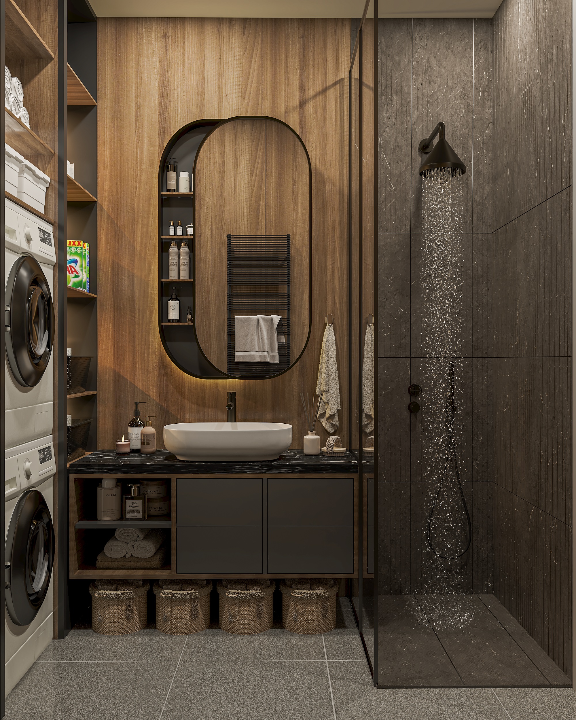 Legolas Kapak Banyo Modeli, son dönemin dekorasyon trendlerinden ilham alarak sade ve fonksiyonel tasarımları bir araya getiriyor. Açık renklerin, ahşap malzemelerin ve doğal görünümlü yüzeylerin mükemmel uyumu, ergonomik yapılar ve pratik tasarımlar sayesinde banyolar hem şıklığı hem de fonksiyonelliği bir arada sunuyor. Minimalist çizgiler ve doğal renk tonlarının hakim olduğu modeller, ferah bir atmosfer yaratırken, her detayıyla kullanımı son derece pratik ve rahat hale getiriyor.
