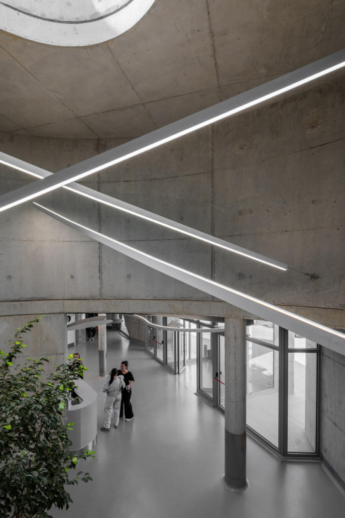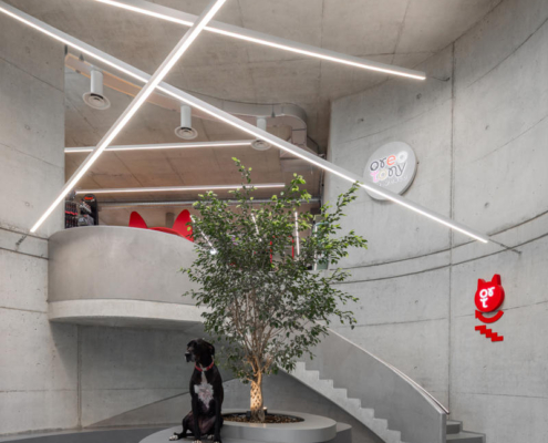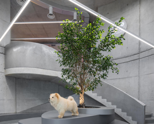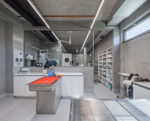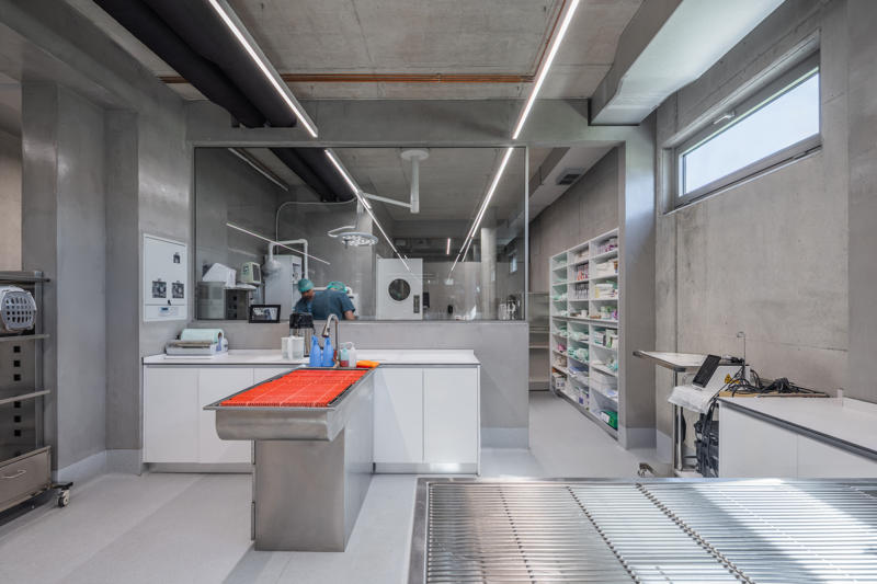 Yumuşak organik formlarla betonun güçlü yalınlığı arasındaki karşıtlık, işlevselliği estetik derinlikle birleştiriyor. Teraslar ve bahçeler yalnızca süsleme değil; hastaların ışık, hava ve doğayla temas kurabileceği iyileştirici mekanlar olarak düşünülmüş. İç mekan hastane kullanıcılarının psikolojik ihtiyaçlarına göre dikkatle planlanmış. İnsan sağlığında olduğu gibi, mekan psikolojisi burada da temel rol oynuyor: Mekanlar farklı türlerin, özellikle doğal rakiplerin kendini güvende hissetmesi için kurgulanmış. Kedi ve köpekler için alanların düzenlenmesi, insanlar için olduğu gibi konfor, gerektiğinde ayrışma ve düşünceli bir birliktelik yaklaşımıyla ele alınmış.