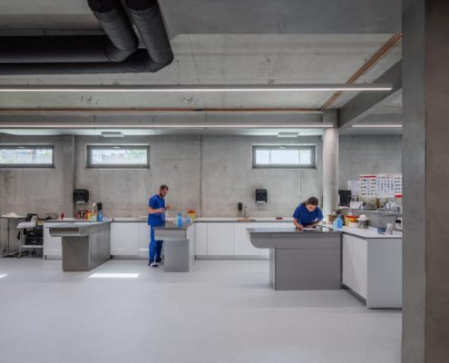 Anıtsal ve durağan mekanlardan, yaşamı kucaklayan dinamik ve kapsayıcı mekanlara geçişi temsil eden yapı, tutkuyla yapılan zanaata, vizyon sahibi yatırımcılara ve işlevsel olduğu kadar olağanüstü bir şey yaratma arzusuna bir övgü niteliğinde tasarlanmış. Tiran Veteriner Hastanesi yalnızca kuralları sorgulayan değil; aynı zamanda iyileştiren, hizmet eden ve ilham veren bir mimarlık anlayışını sembolize ediyor.