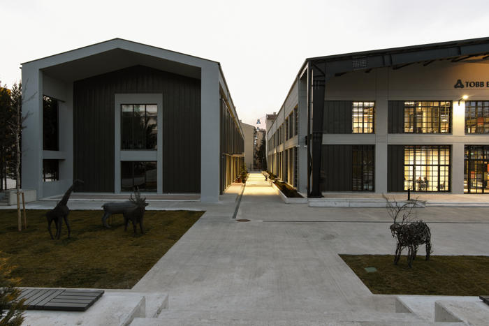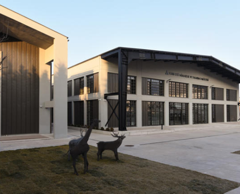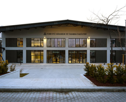 TOBB ETÜ Mimarlık ve Tasarım Fakültesi, farklı dönemlerde farklı kamusal ihtiyaçlara yanıt vermiş iki yapının dönüşümüyle şekillenen özgün bir eğitim yapısı olarak tasarlanmış. Bu iki yapıdan ilki, uzun yıllar Orman Bakanlığı’na bağlı olarak işleyen ve mekanik üretimin izlerini taşıyan bir tamirhane atölyesi; ikincisi ise, kamusal kullanımın daha gündelik, sosyal yönlerini temsil eden bir sosyal tesis binası. 2019 yılında TOBB ETÜ’ye devredilen bu yapılar, 2024 yılında tamamlanan bir dönüşüm süreciyle mimarlık ve tasarım eğitimine özgü bir kurumsal kimlik kazanmış.