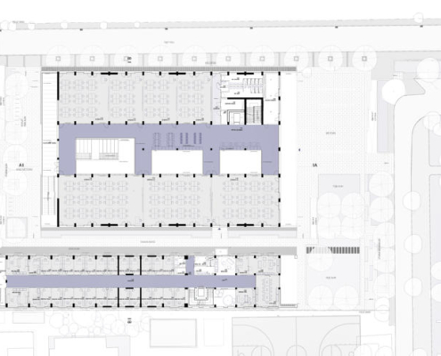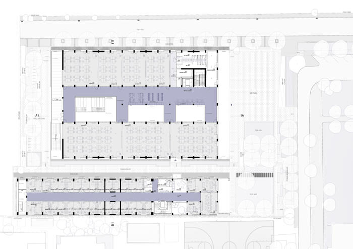 Açık Çalışma Alanları: Ortak açık mekanın farklı noktalarına yerleştirilen çalışma alanları, üretimi stüdyo sınırlarının ötesine taşıyarak akademik faaliyetleri yaygınlaştırıyor. Böylece, mekansal kurgu öğrencinin inisiyatifine açık hale geliyor ve öğrenme zamanla sınırlanmadan süreklilik kazanıyor.