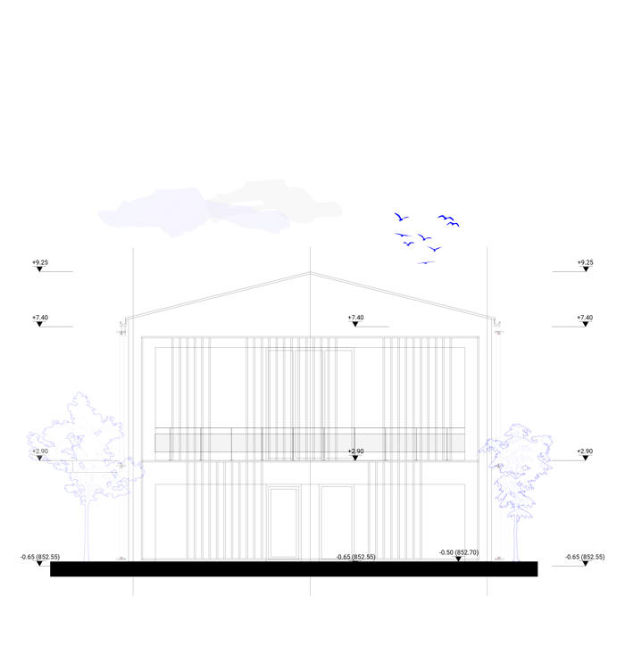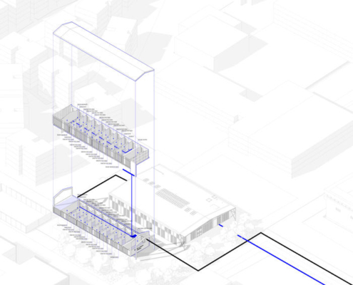 Bu çerçevede fakülte binasında ve “açık mekan” ve “yaşayan laboratuvar” kavramları bağlamından tanımlanan tasarım stratejileri geliştirilmiş. Açık mekan, öğrenmenin farklı boyutlarını birbirine temas ettiren, karşılaşmaları mümkün kılan ve bilgi üretimini mekansal hareketlilikle ilişkilendiren bir kurgu öneriyor. Açık mekan, yapı içindeki ögeler arasında keskin sınırlar tanımlamak yerine, geçirgenlik ve süreklilik üzerinden işleyen bir mekansal mantığa dayanıyor. Hareketi, etkileşimi ve ortak üretimi destekleyen bu yaklaşım, fiziksel alanları durağan birer mekan değil, sürekli değişen ilişkisel yüzeyler olarak ele alıyor. Bu sayede her alan, kendi işlevsel bütünlüğünü korurken aynı zamanda diğer alanlarla yeni bağlar kuruyor; bu bağlar ise eğitim pratiğinin çok merkezli ve katmanlı doğasını yansıtıyor. Açık mekan stratejisi, mimarlık ve tasarım eğitimini belirli mekanlara sıkıştırmak yerine, yapının tamamını öğrenme ortamı haline getirerek, kamusal, sosyal ve pedagojik ilişkilerin sürekli olarak şekil değiştirdiği, birbirini dönüştürdüğü bir atmosfer yaratıyor.