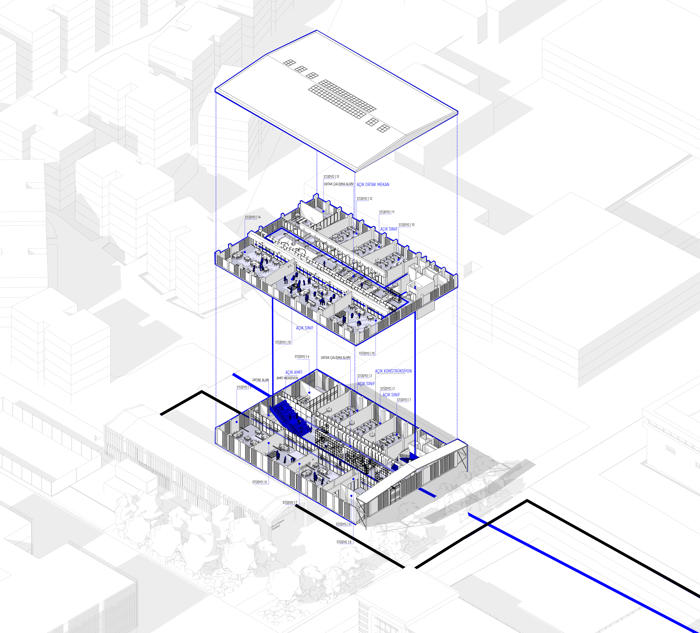 Yapısal kararlar ve tasarım stratejileri doğrultusunda bu endüstriyel yapının anatomisi, yalnızca bir taşıyıcı sistem olarak değil, aynı zamanda pedagojik bir organizma olarak yeniden ele alınmış. Güçlendirilmiş çelik makaslar, eklemlenen yeni akslar ve korunan yapısal izler; yapının teknik anlamda mekansal niteliğini iyileştirirken, aynı zamanda eğitsel anlamını da vurgulayan unsurlar olarak düşünülmüş. Böylece yapı, bir yandan geçmişin üretim pratiklerini ve mekansal hafızasını barındıran bir arşiv niteliği taşırken, diğer yandan sezgisel bilgi üretimini, deneyime dayalı öğrenmeyi ve çok katmanlı düşünme biçimlerini destekleyen güncel bir sistem laboratuvarına dönüştürüyor.
