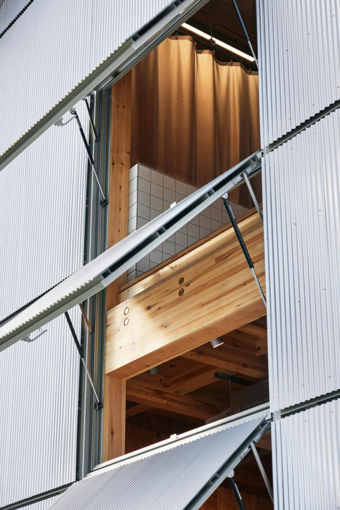 Maliyet odaklı planlama süreci, basit çerçevelerden oluşan bir taşıyıcı sistemin tercih edilmesine yol açmış ve yapı tümüyle tek bir büyük hacim olarak ele alınmış. Ön bölümde yer alan sanatçı rezidansı, günlük kullanımda giriş ve ortak alan işlevi üstleniyor. Normalde kapalı tutulan kepenklerin ardında yer alan ve “nedoko” olarak adlandırılan mekanda lavabo, tuvalet, banyo ve spiral merdivenle ulaşılan geniş bir asma kat bulunuyor. Bu alan, dışarıdan gelen sanatçılar, tasarımcılar ve öğrenciler için konaklama ve üretim imkanı sunuyor. Kuzey cephesinde yer alan vasistas pencerelerin sokağa doğru açılması, iç mekandaki yaşamın dışarıya yansımasına olanak tanıyor. Bu açıklık, yapıyı sürekli değişen, yeni karşılaşmalar ve bağlantılar üreten canlı bir kentsel mekan olarak tanımlıyor.