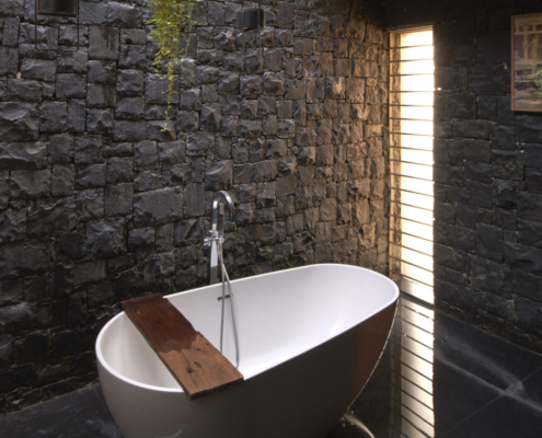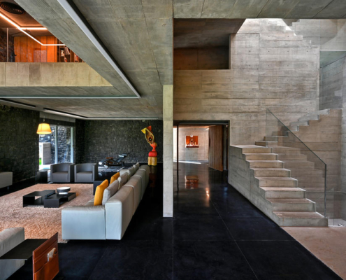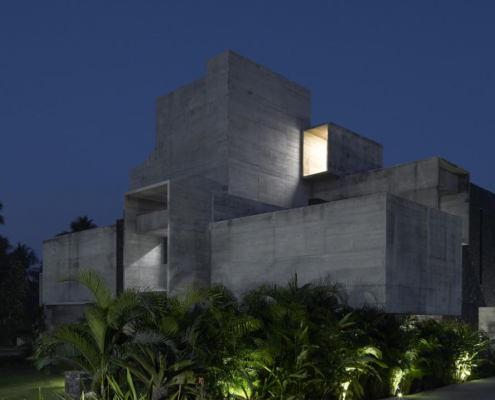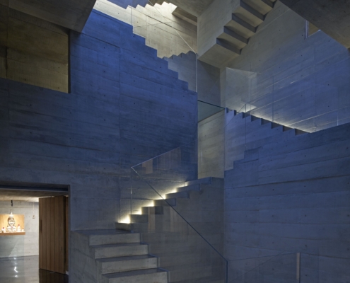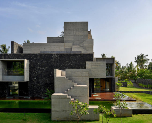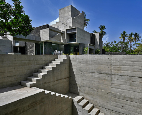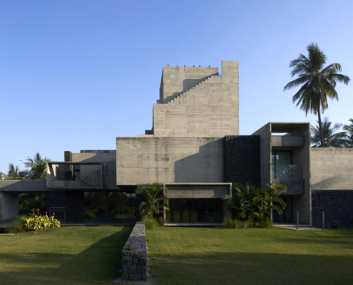 Feragat etmeyi ve zarar vermemeyi öğütleyen kadim bir Hint dini olan Jain geleneklerini takip ederek, modern ilhamlarla tasarlanan, çok nesilli birleşik aile evinin yönergeleri mimarlar için zorlayıcı olmuş. Geleneksel bir yönetmelik işlevi gören; su ögelerin, mekanların ve renklerin kullanımına dair katı bir kural seti oluşturan “Vaastu Shastra” içerisinde, konuta özel kuralları belirleyen “Brahmasthan” ise gökyüzüne açılan bir avlu etrafında örgütlenmiş bir düzeni tarif ediyor.