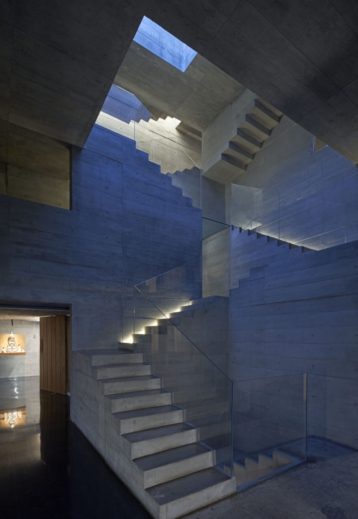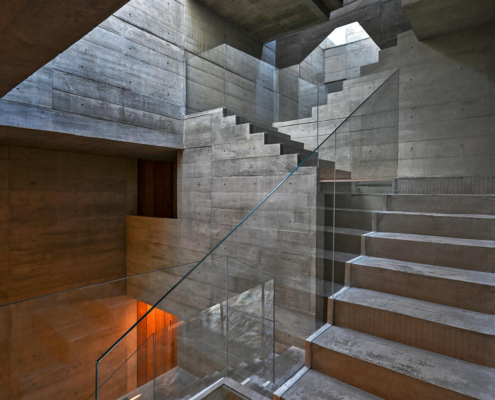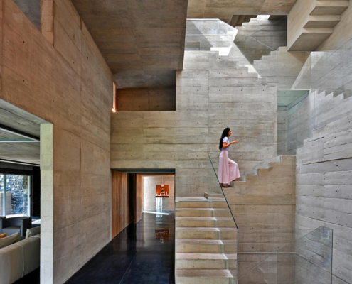 Büyük ağaçların altına gizlenmiş, terk edilmiş tatlı su kuyusuna zorlukla ulaşılabiliyormuş. Ağaç köklerinin karmaşasına dokunmadan arsayı şekillendirme gereksinimi mekansal bir yolculuğun başlangıcını oluşturuyor; iki kat derinlikteki kuyudan başlayarak altı kat yukarıdaki deniz manzarasına ulaşan bir serüven tasarlanıyor. İki su kaynağı arasında kıvrılarak yükselen yolculukta, sadece güneş yol gösterici çünkü doğa, insan hafızasının kapsadığından çok daha uzun zamandır varlığını sürdürüyor. Bu ışıltının içinde, başka hiçbir şeye ihtiyaç duymadan yıkanan basamaklar sahnenin merkezine yerleşiyorlar; bir vazgeçiş, fazlalıklardan sıyrılma ve özü açığa çıkarma sürecini temsil ediyorlar.