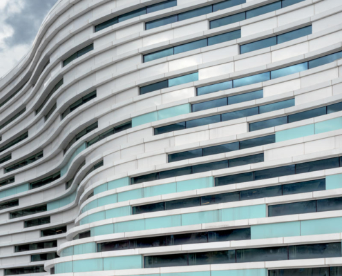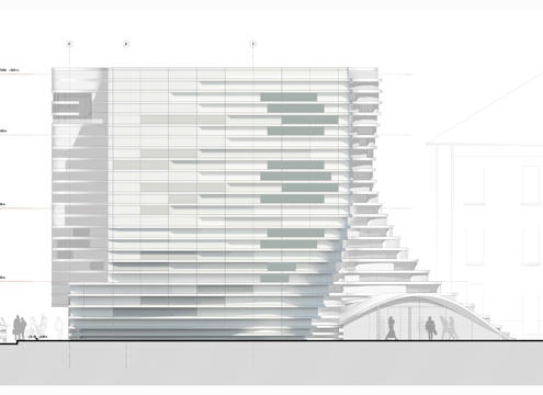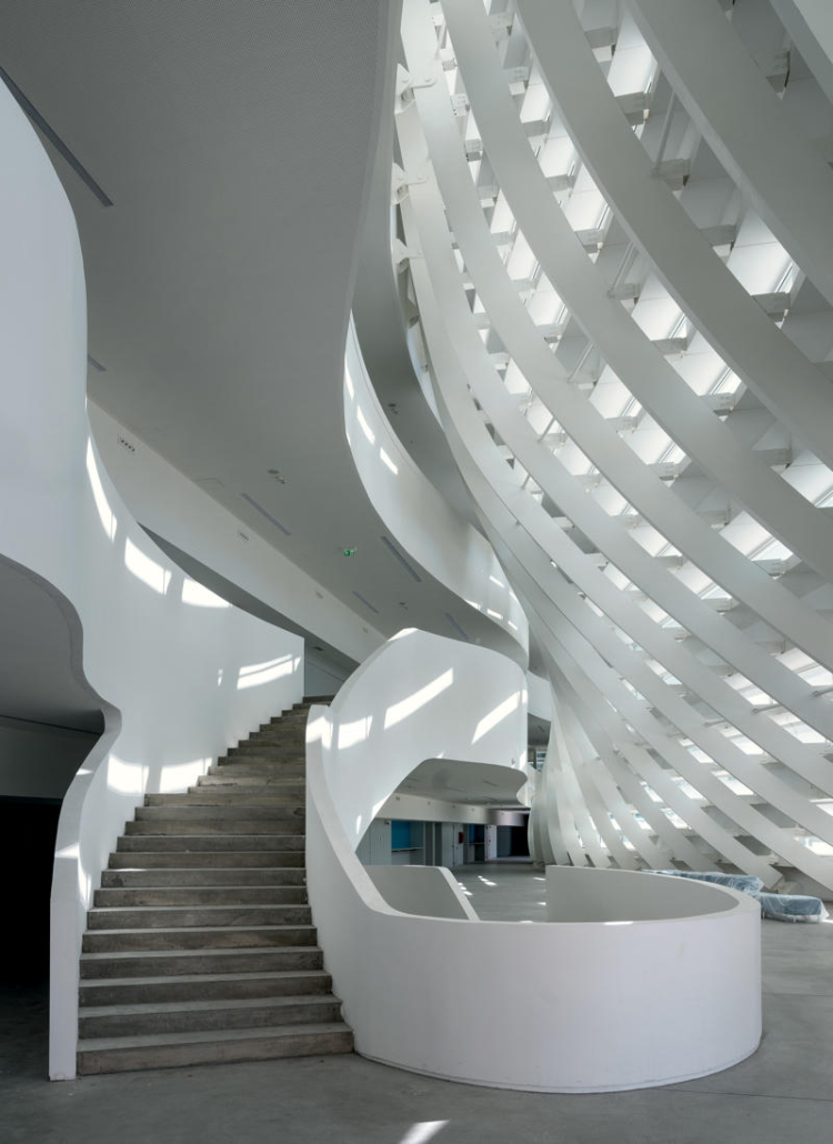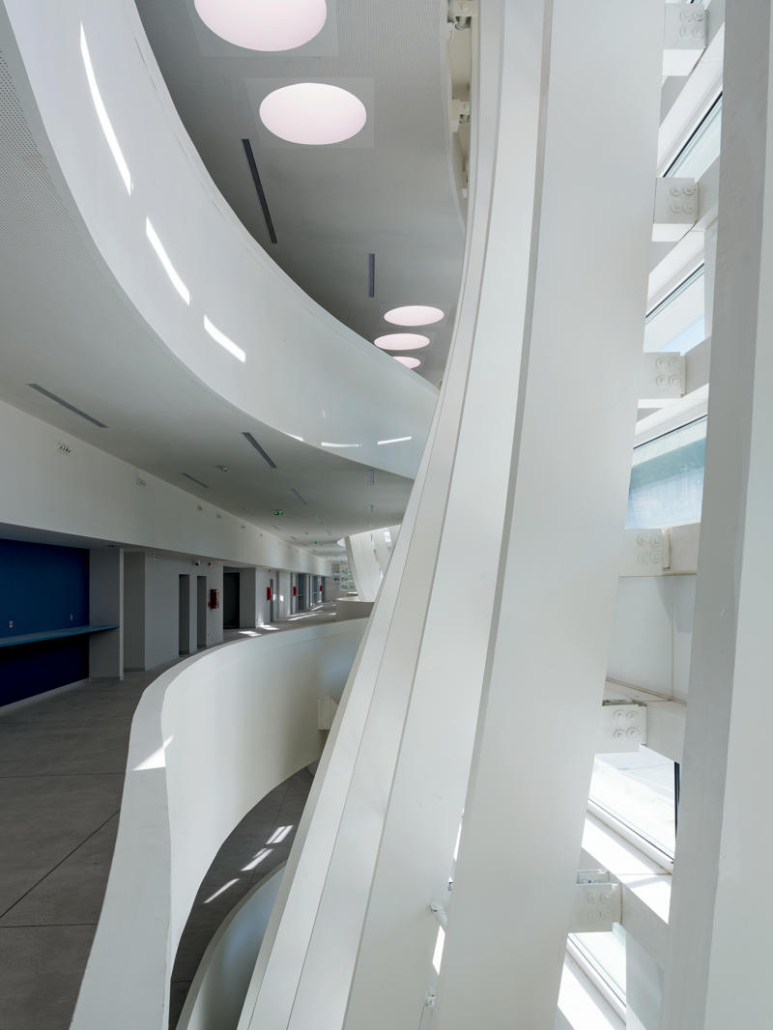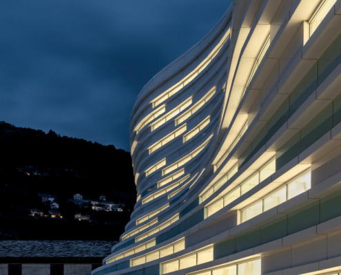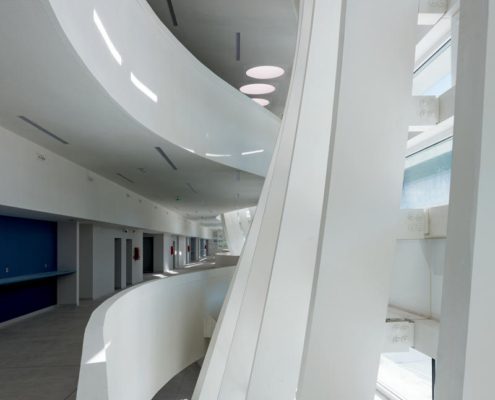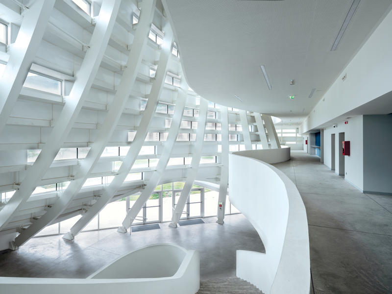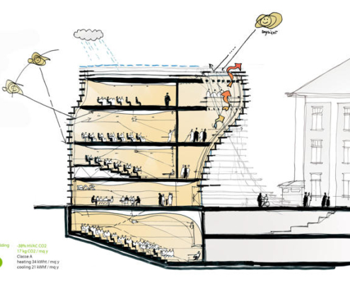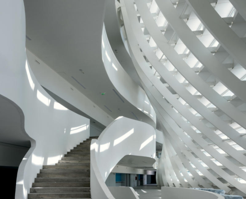 Aosta’daki yeni üniversite kampüsü, çağdaş mimarinin peyzaj ve iklimle nasıl uyum sağlayabileceğini gösteren bir örnek sunuyor. Projenin esin kaynağı olan “buzdağı,” salt biçimsel bir tercih değil, aynı zamanda bağlama güçlü bir gönderme içeriyor. Bir yandan renk ve biçimleriyle karlarla örtülü Alp manzarasına bağlanırken, diğer yandan üstün enerji performansı sağlayan bir form yaratıyor. Yeni bina, bitki organizmalarında gözlemlenen yapısal biçimlerden ilham alan ve işlevsel bağımsızlığa sahip bir organizasyon modeline göre tasarlanmış. Proje, iki katı yer altında olmak üzere toplam altı kattan oluşuyor.